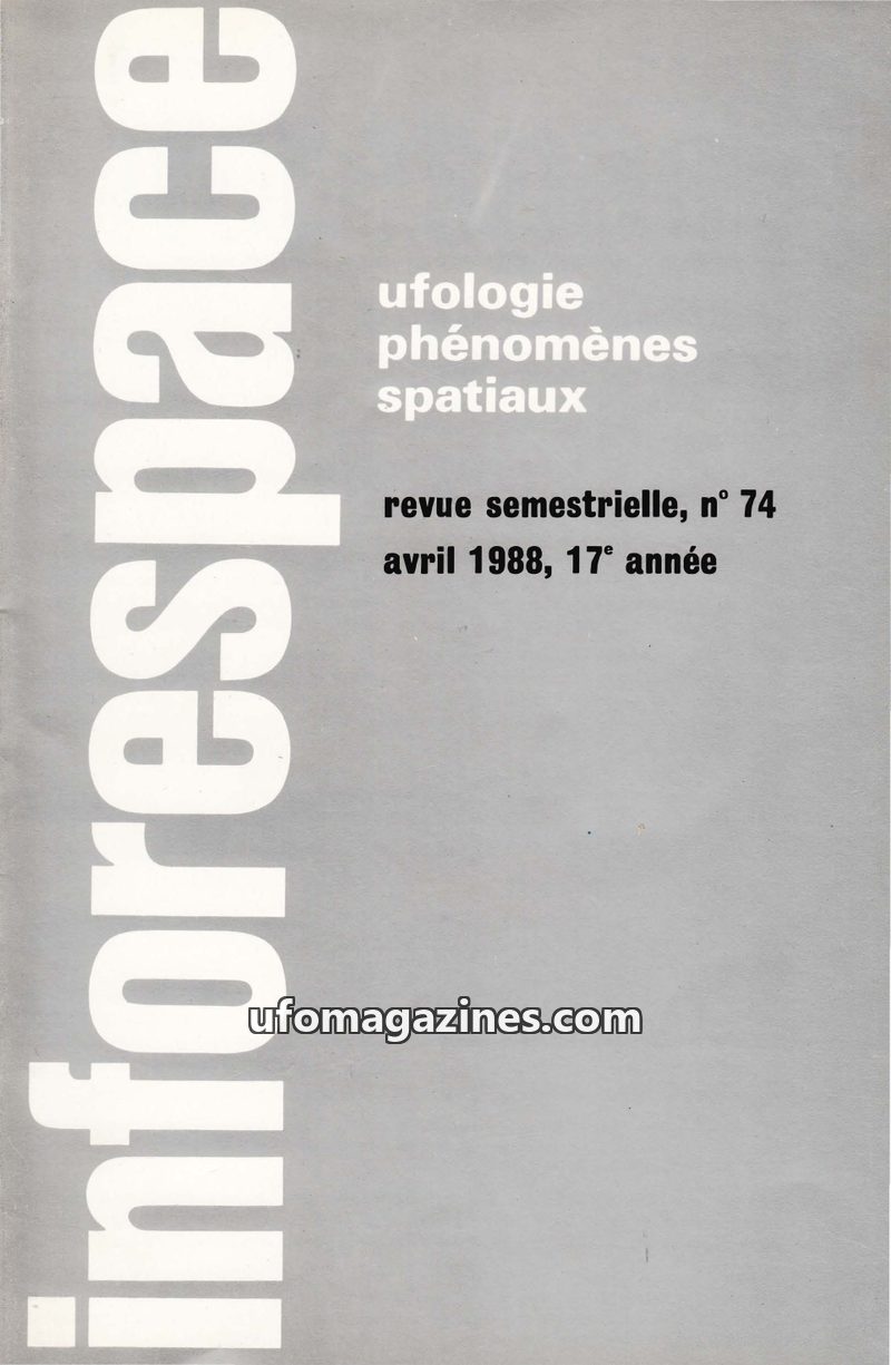 This issue of Inforespace, dated April 1988, focuses on ufology and spatial phenomena. It includes an in-depth analysis of a sound recording made by a young witness in Nort-sur-Erd