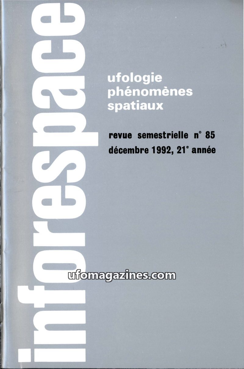 This issue of Inforespace (No. 85, December 1992) marks the 21st year of publication and focuses on the rational study of unidentified aerial phenomena. It includes an editorial di