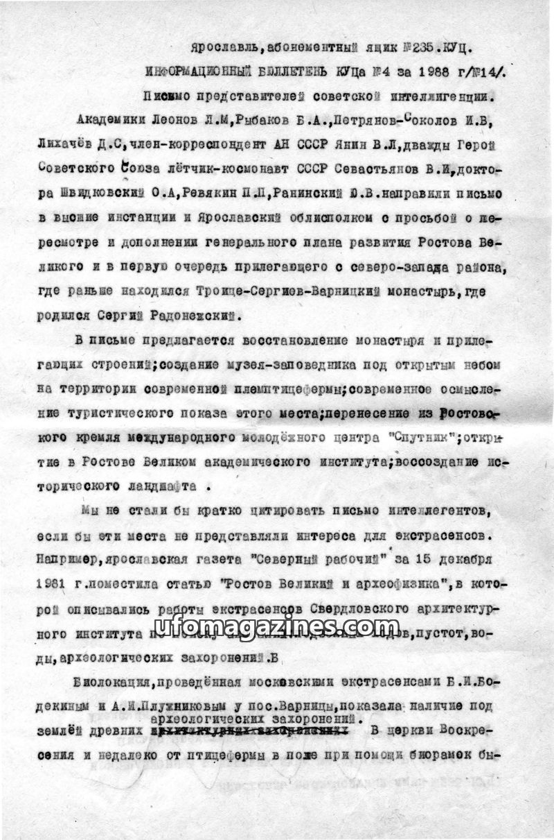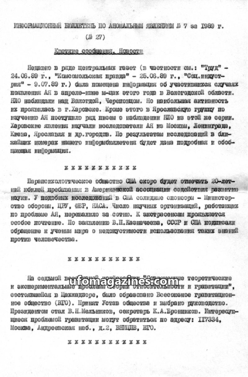 This issue of the Information Bulletin on Anomalous Phenomena covers recent UFO sightings in the Vologda region, the activities of psychics in the USSR and USA, and scientific inve