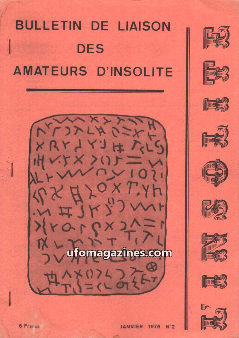 This issue of 'Bulletin de Liaison des Amateurs d'Insolite' from January 1976 (N°2) includes an article detailing recent scientific dating efforts at the Glozel archaeological site