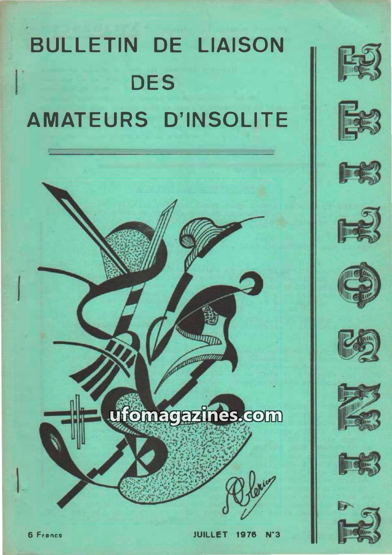 This issue of 'Bulletin de Liaison des Amateurs d'Insolite' from January 1977 focuses on a UFO sighting at Glozel. It also delves into the history and mysteries of the Order of Ant