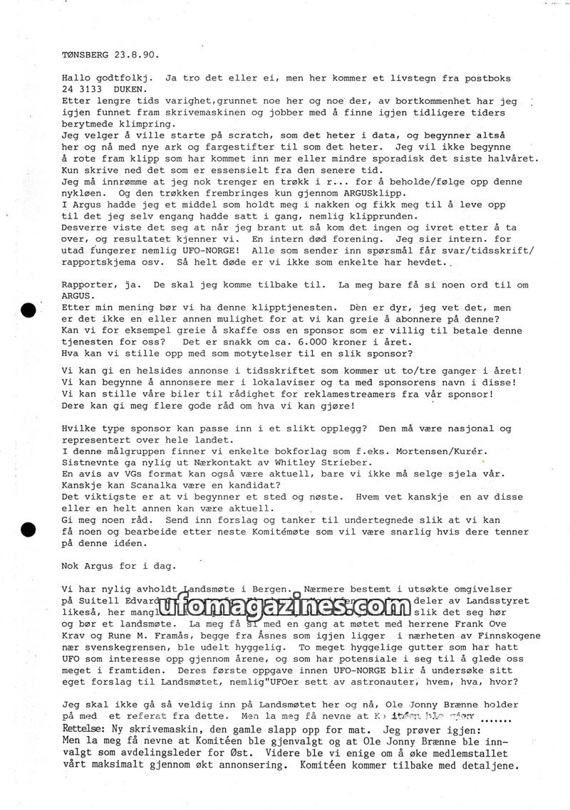 This issue of Tønsberg magazine covers recent UFO sightings and related discussions. It features an article on the unexplained Andebu UFO incident in Norway, and extensive coverage