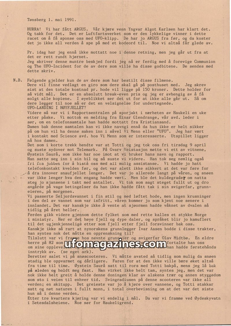 This issue of UFO-Aktuelt reports on a series of UFO sightings and a landing near Haukeli, Norway, in March 1991. The investigation involved examining physical evidence such as tra