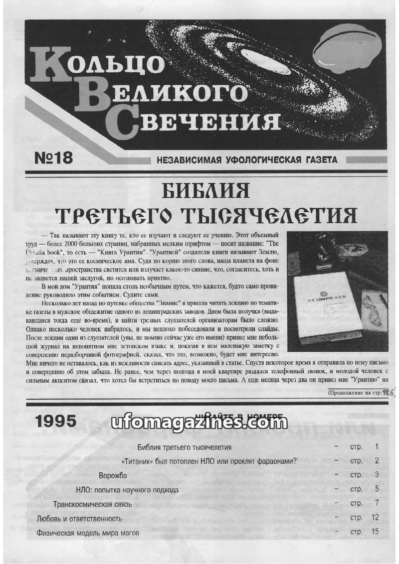 This issue of the Independent Ufological Newspaper explores the 'Bible of the Third Millennium' (The Urantia Book), a voluminous work detailing cosmology and Earth's history from a