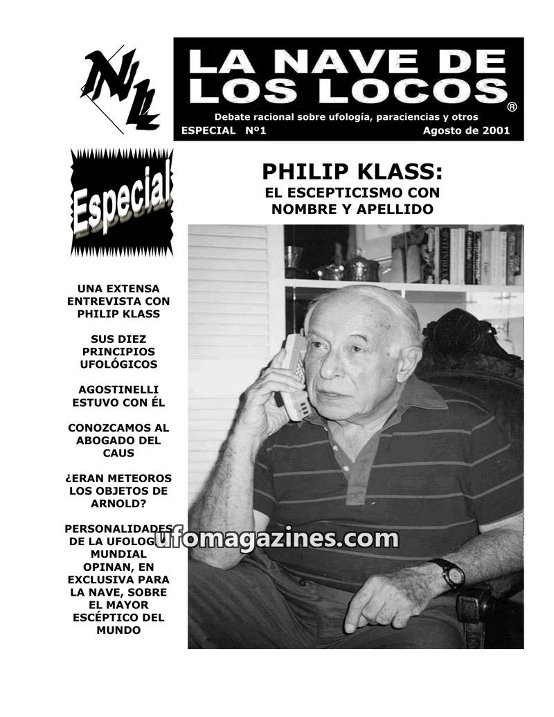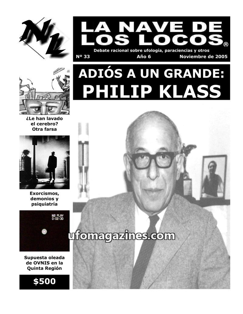 This issue of La Nave de los Locos is a tribute to Philip Klass, a prominent UFO skeptic who passed away. It highlights his career as an investigator and journalist, his contributi
