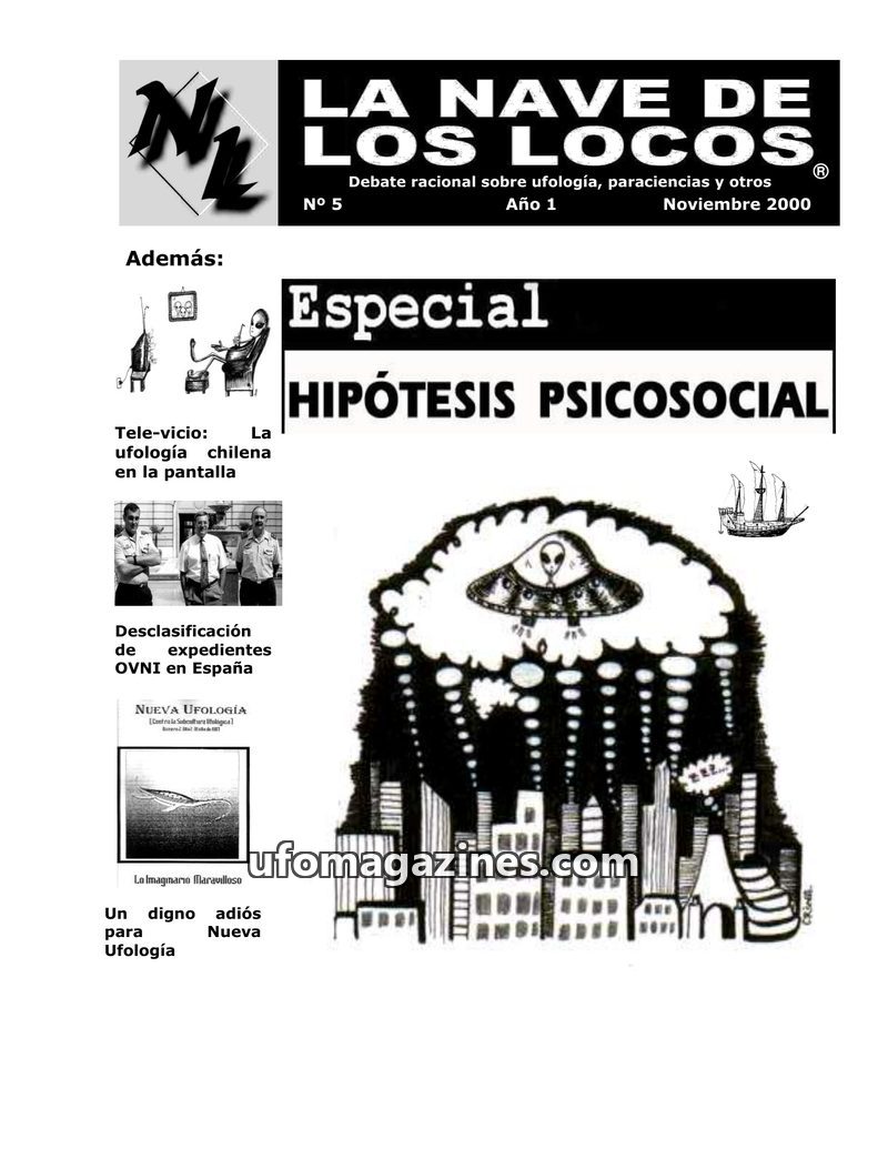 This issue of 'La Nave de los Locos' focuses on the Psychosocial Hypothesis (HPS) as an alternative to the Extraterrestrial Hypothesis (HET) in understanding UFO phenomena. It feat