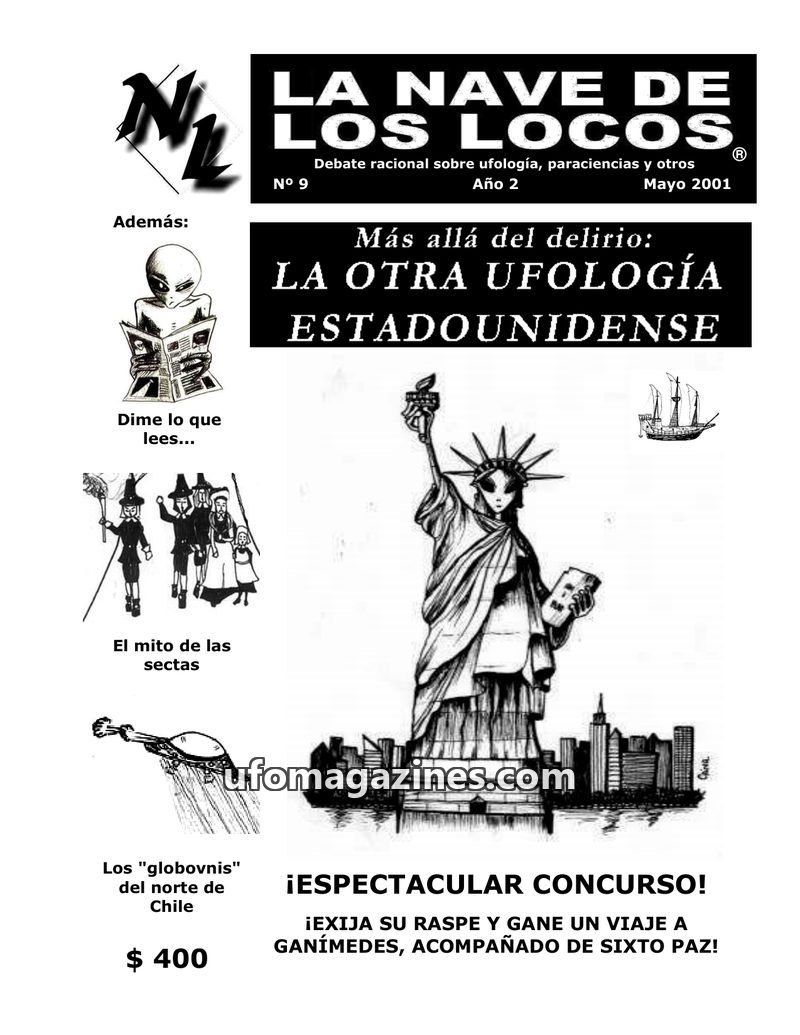 This issue of 'La Nave de los Locos' focuses on critical and skeptical approaches to ufology, particularly within the United States. It examines the controversial MJ-12 documents,