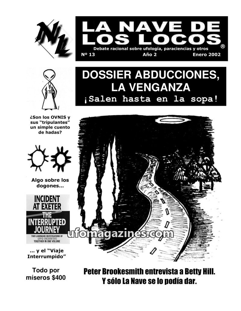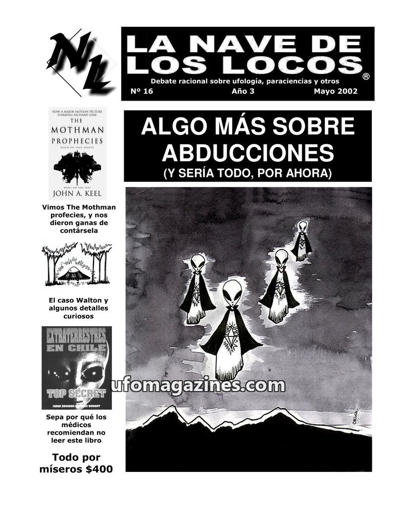 This issue of 'La Nave de los Locos' (March 2002) focuses on a dossier about abductions, exploring various hypotheses and alternative explanations. It critically examines the role