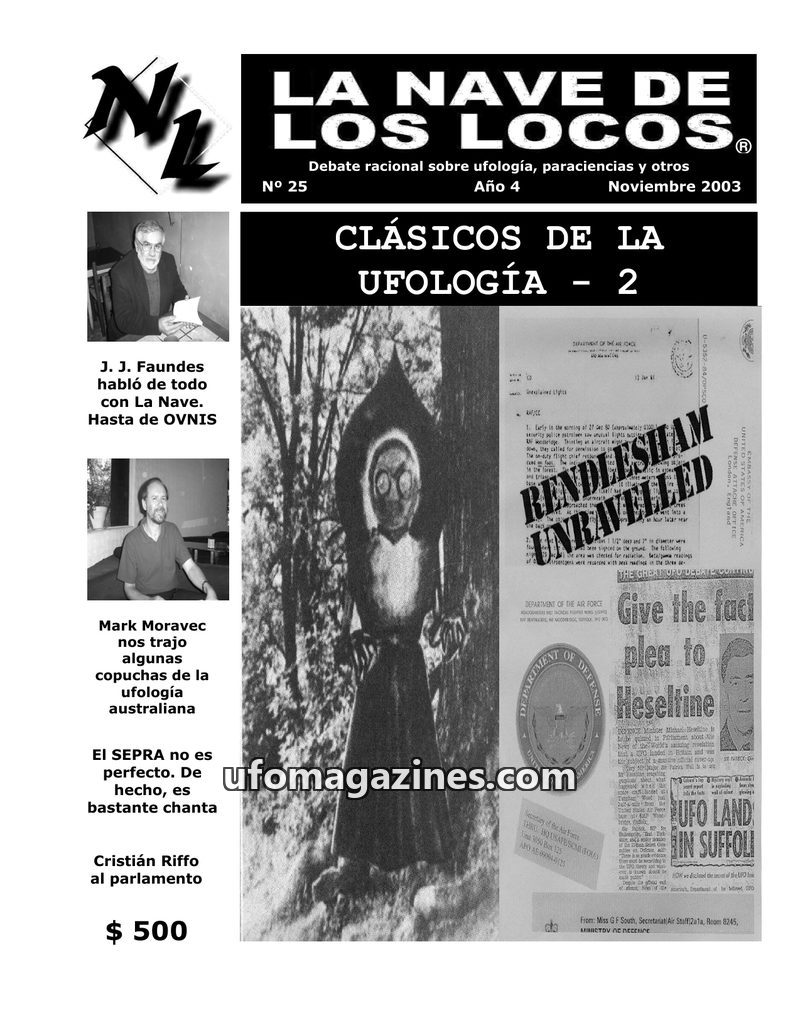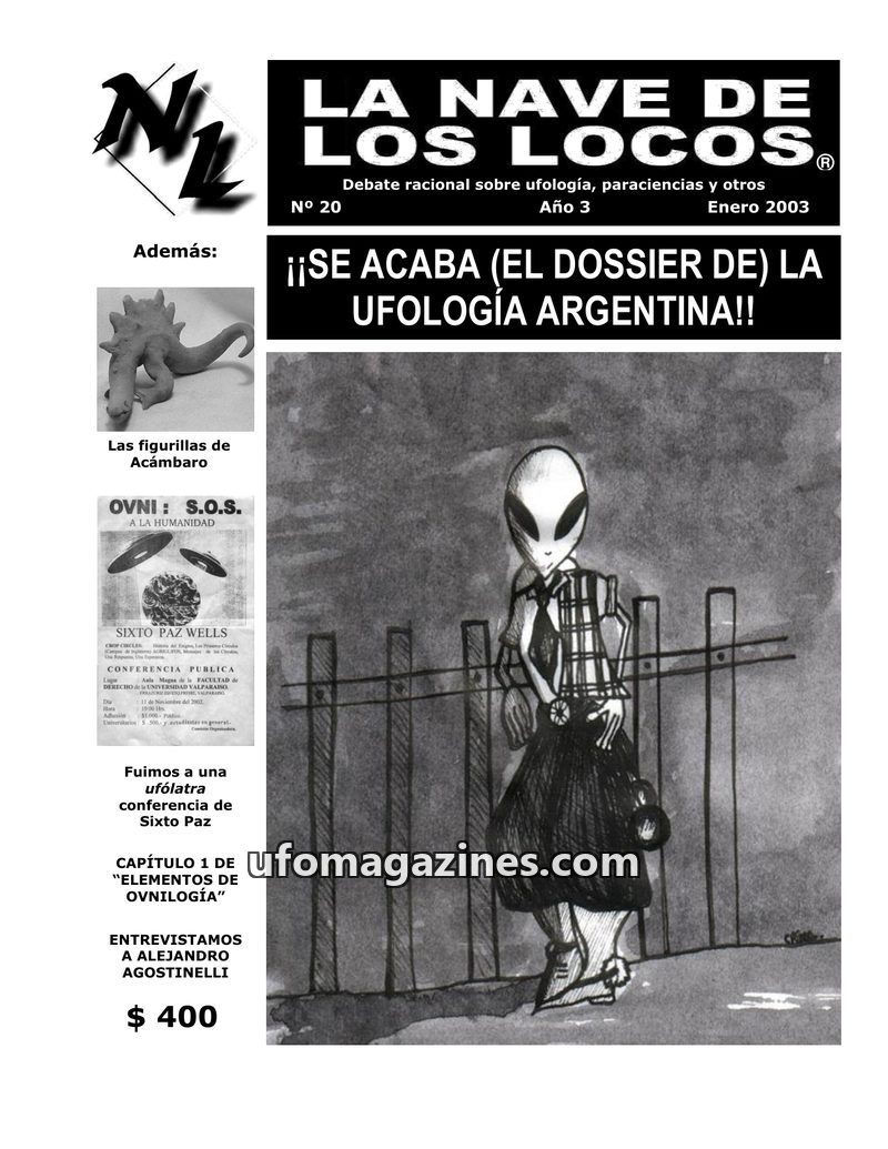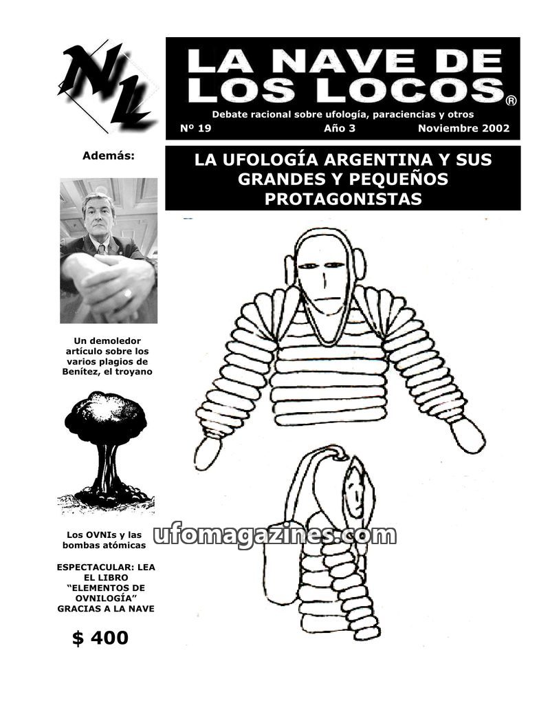 This issue of La Nave de los Locos focuses on Argentine ufology and its key figures. It critically examines the presentation of a UFO video by Antonio Las Heras, questioning its au
