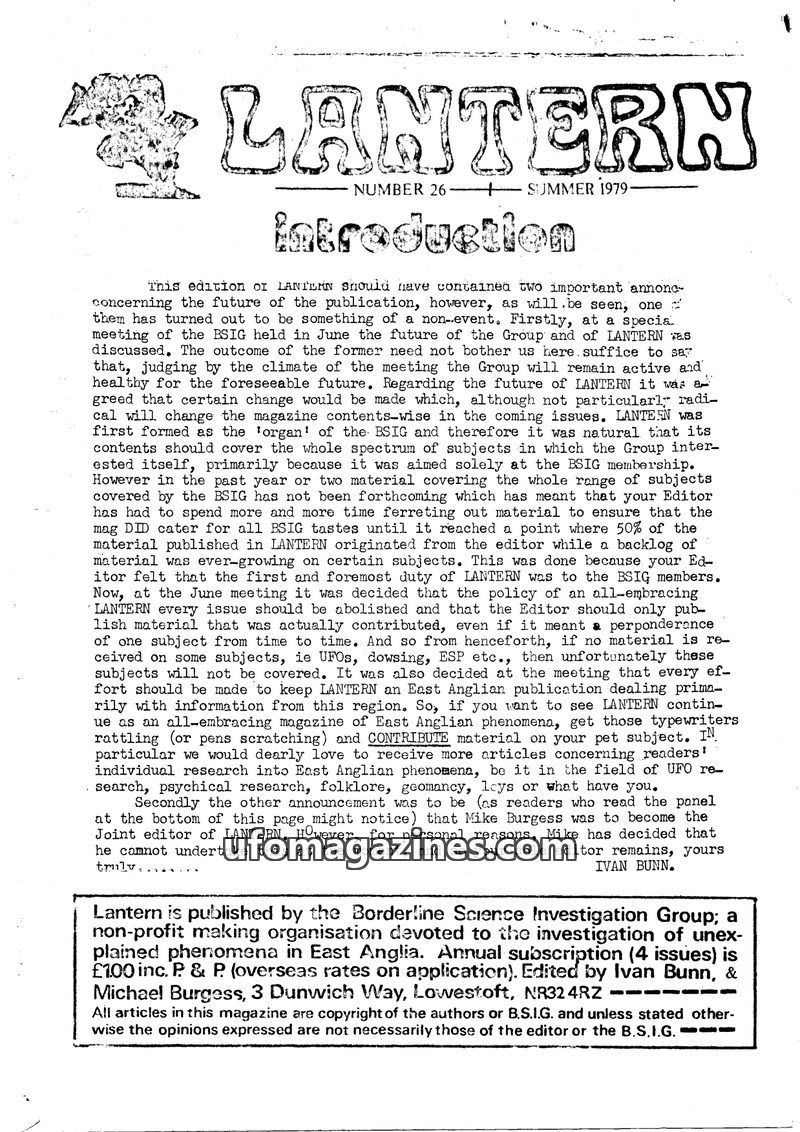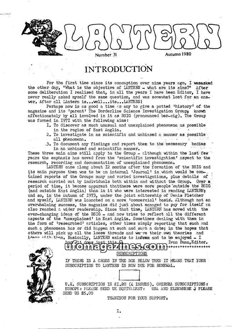 This issue of LANTERN magazine, dated Summer 1980, marks the editor Ivan Bunn's stepping down from running the Borderline Science Investigation Group, though he will continue editi
