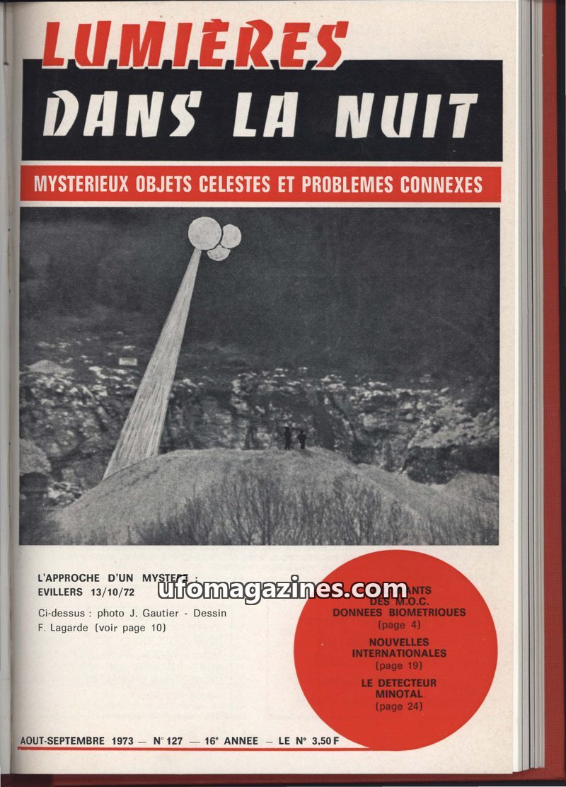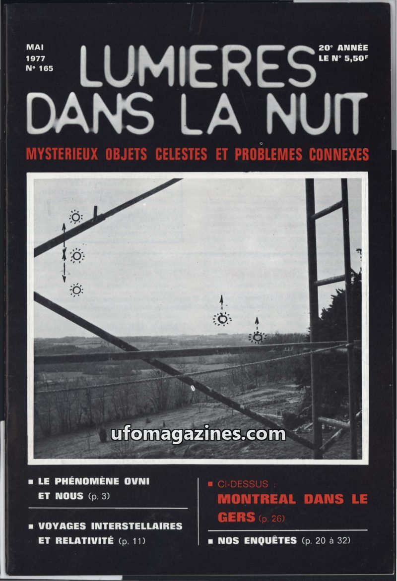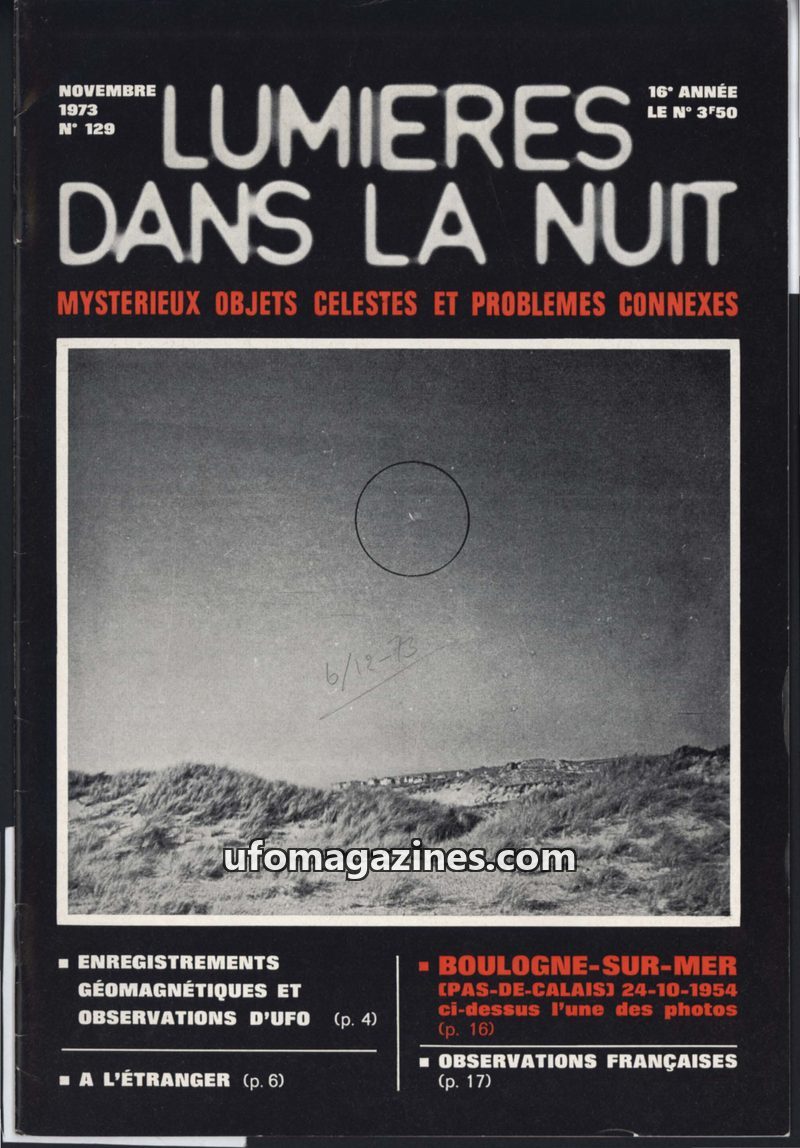 This issue of Lumières dans la Nuit investigates the correlation between geomagnetic fluctuations and UFO sightings, particularly focusing on events in Quebec in July 1971 where po