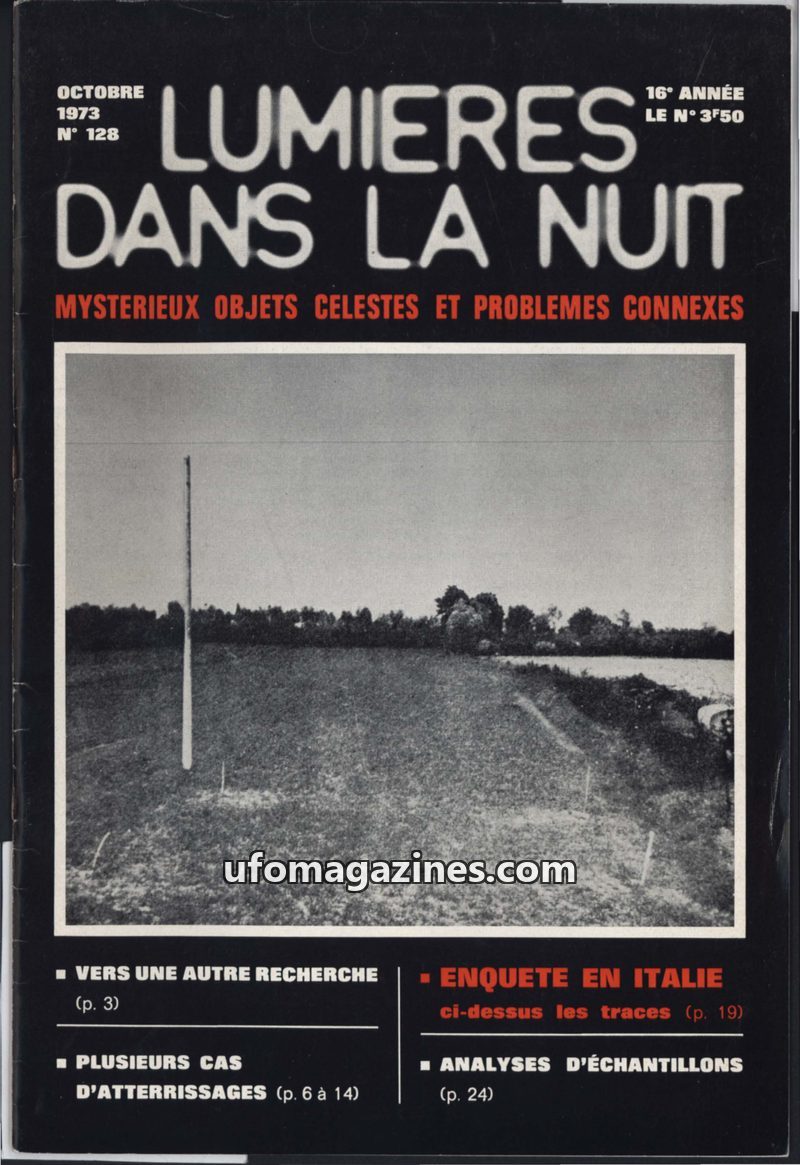 This issue of Lumières dans la Nuit delves into various UFO/UAP phenomena, including a detailed investigation in Italy concerning traces left behind, and analyses of samples. It al