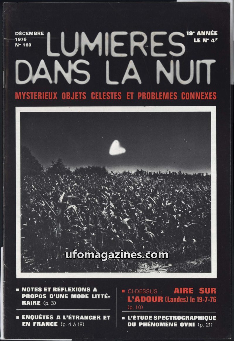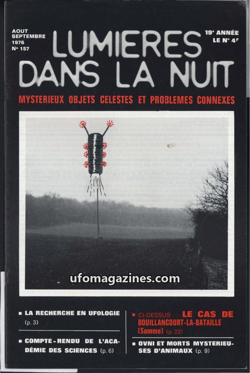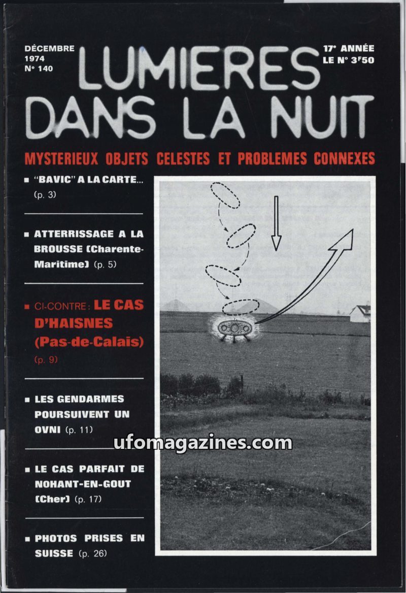 This issue of Lumières dans la Nuit from December 1976 delves into various UFO phenomena with a focus on eyewitness accounts and investigative reports from France and abroad. Artic