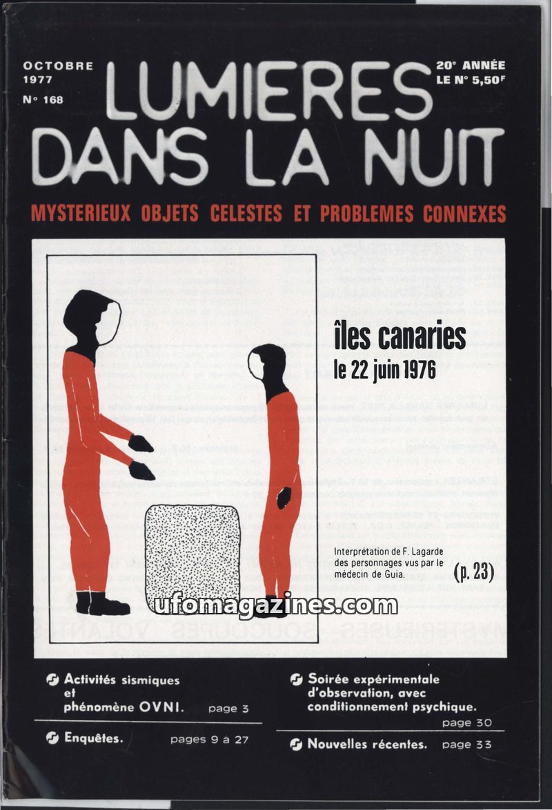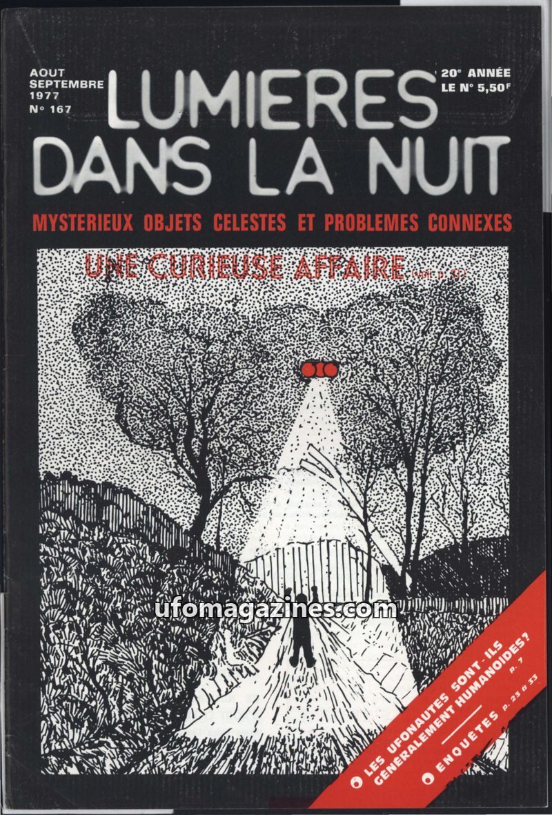 This issue of Lumières dans la Nuit delves into the complex subject of UFOs and humanoids. It features an article questioning the humanoid nature of ufonaute visitors, supported by
