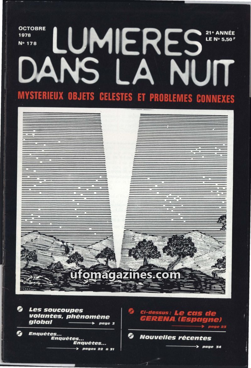 This issue of Lumières dans la Nuit (Oct 1978) features an in-depth analysis of UFOs as a global phenomenon by Jean-Jacques Walter, who examines statistical data and proposes a psy