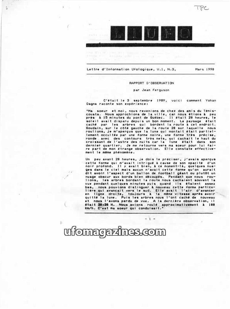 Lettre d'Information Ufologique - Vol 1 No 1 - sept 1989