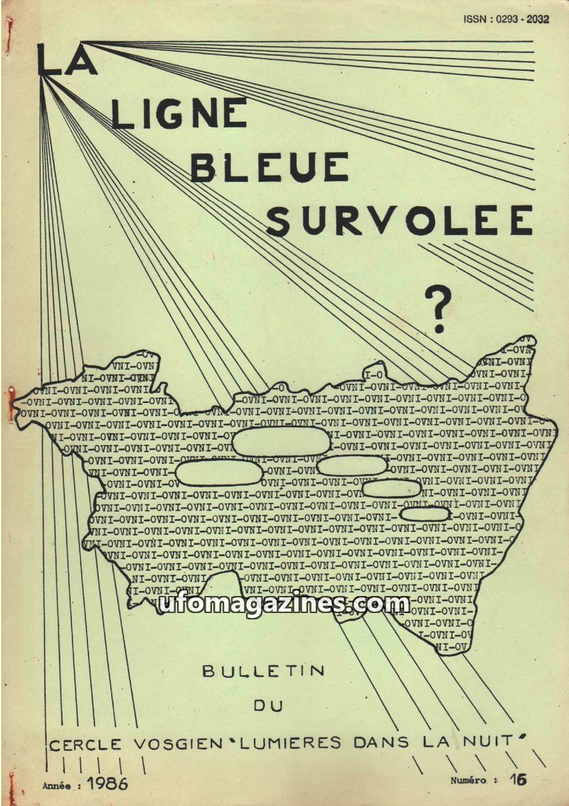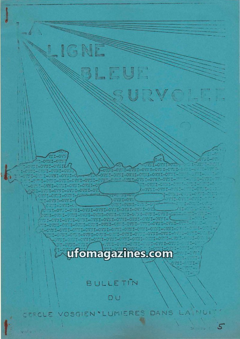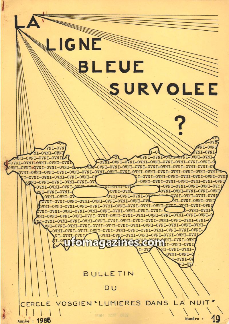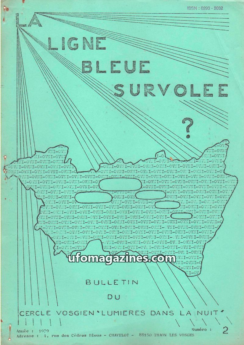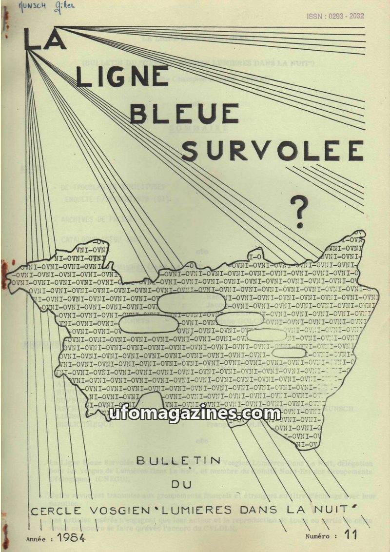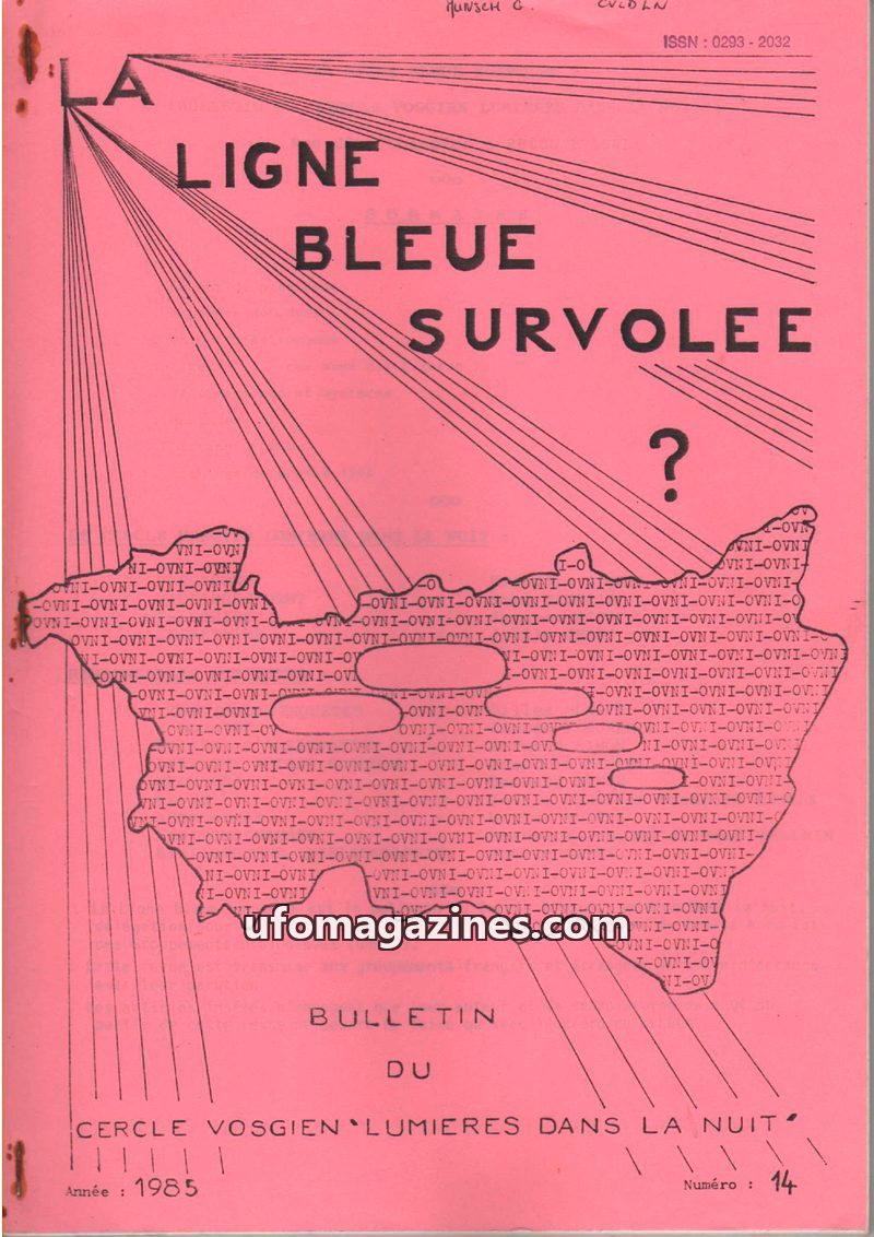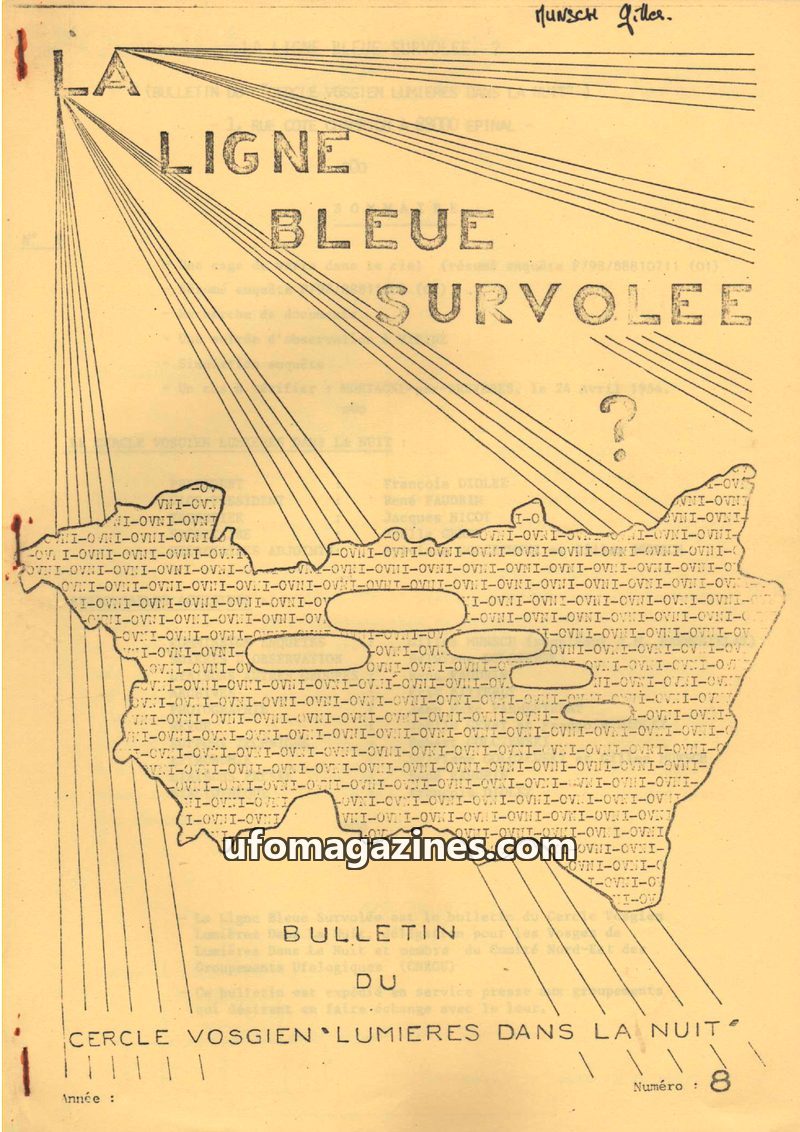 This issue of "La Ligne Bleue Survolée" from the "Cercle Vosgien Lumieres dans la Nuit" (1981, issue 6) compiles press archives and investigation reports on UFO phenomena. It highl
