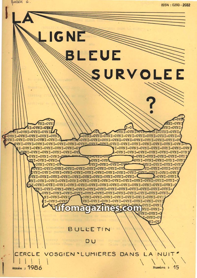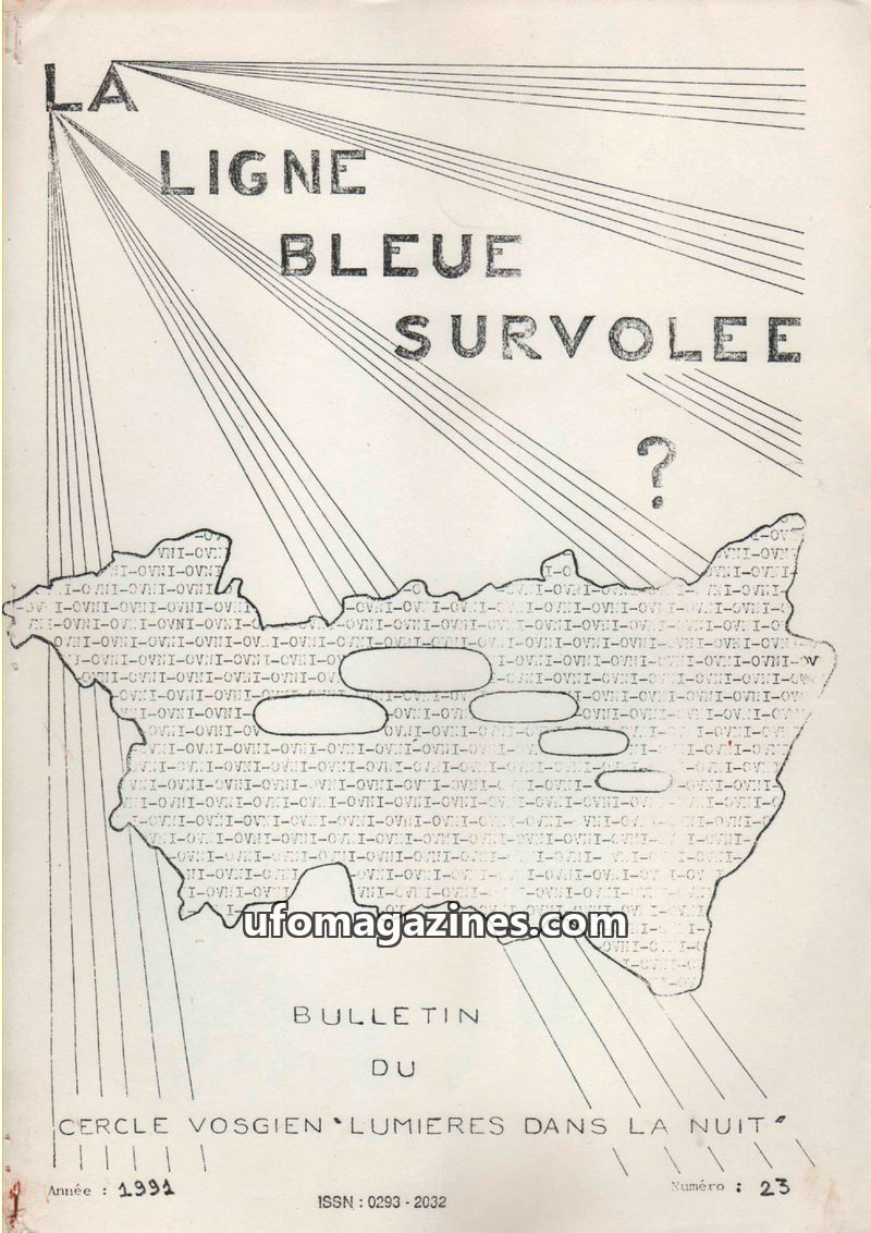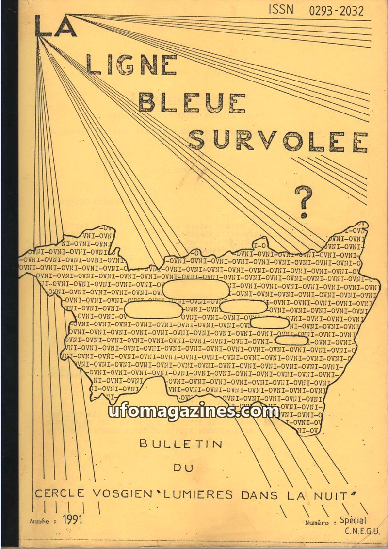 This special issue of 'La Ligne Bleue Survolée?' from 1991, published by the Cercle Vosgien LDLN, focuses on ufological matters. It includes an investigation into a 1974 UFO sighti