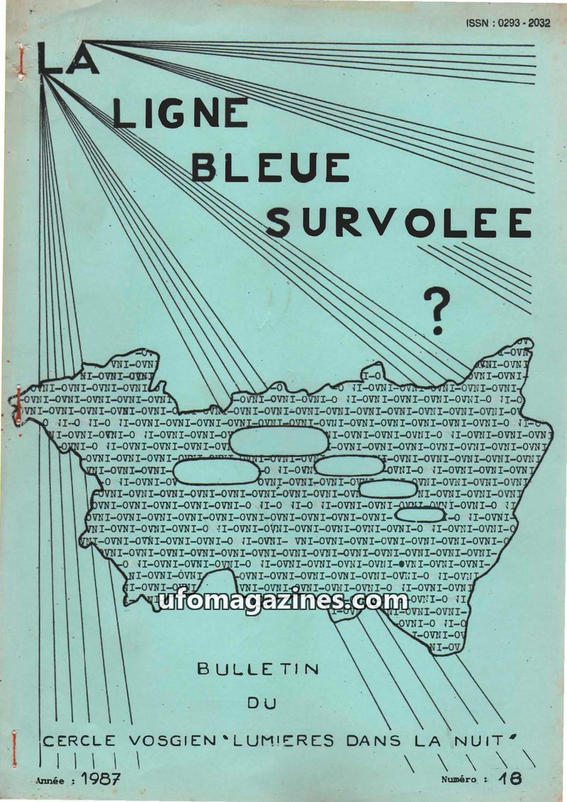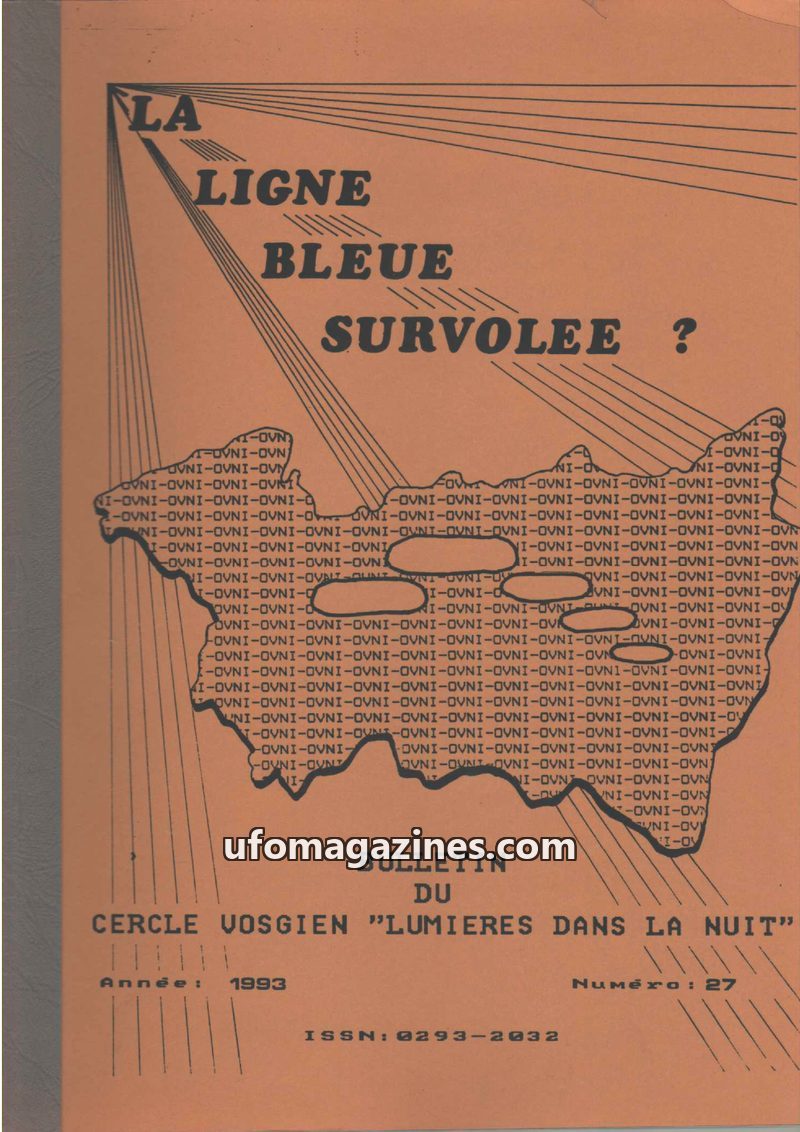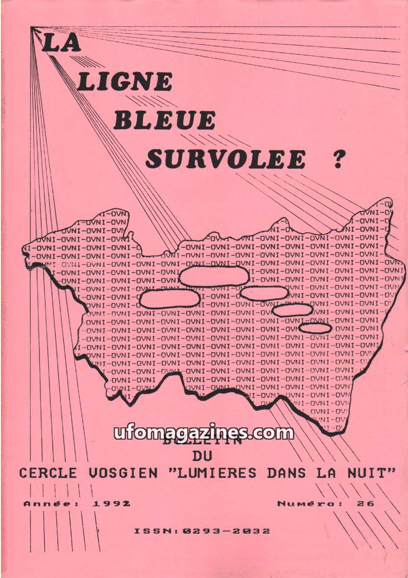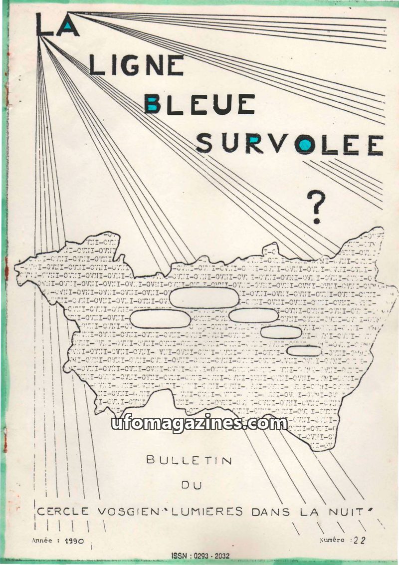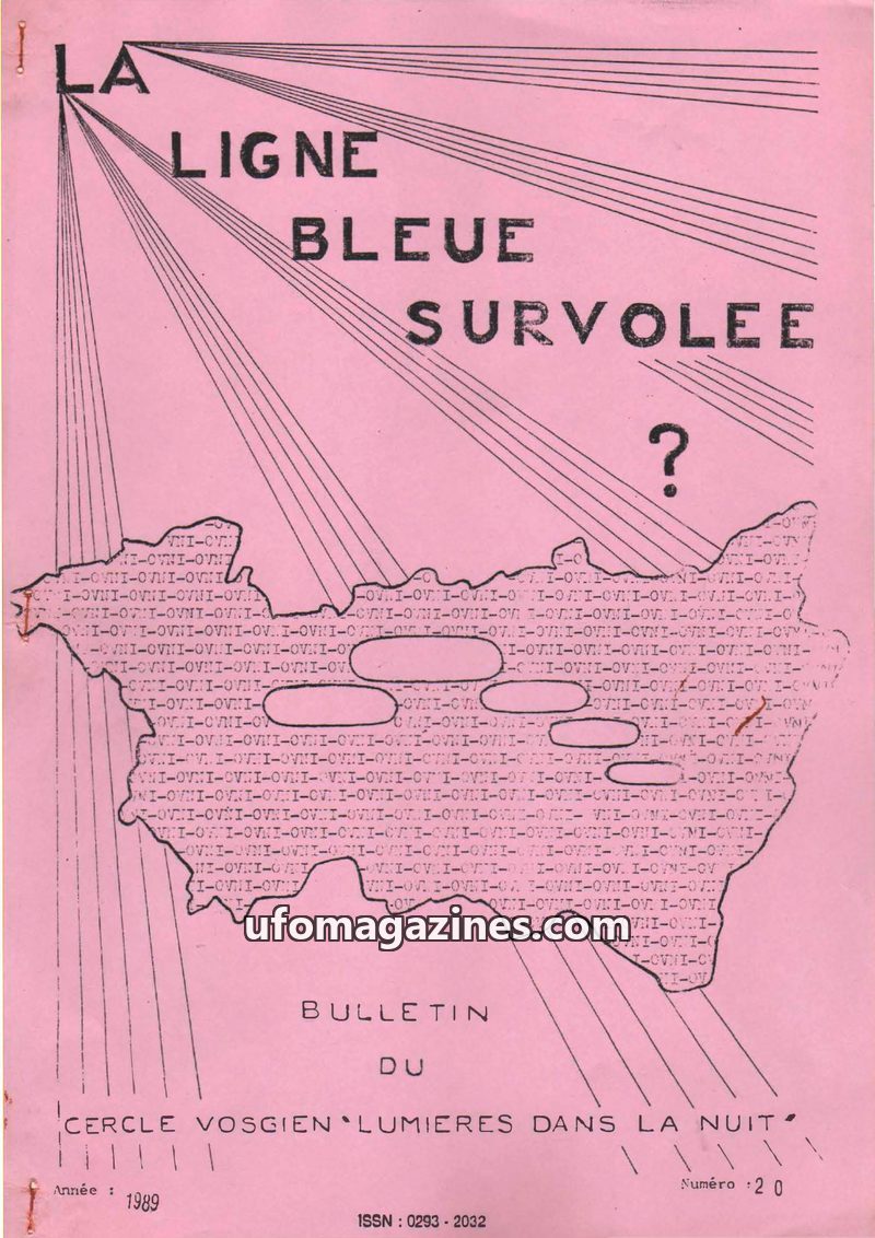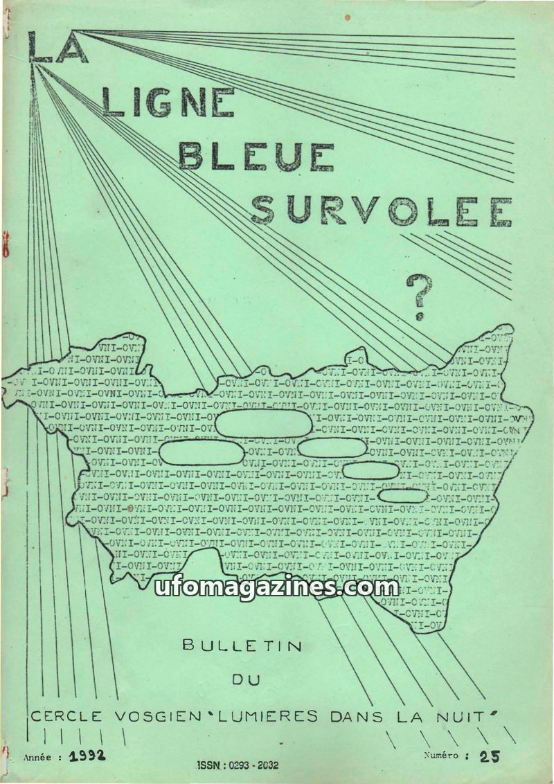This issue of "La Ligne Bleue Survolée ?" (1992) from the Cercle Vosgien "Lumières dans la nuit" explores the mystery of flying saucers. It includes a personal observation report f