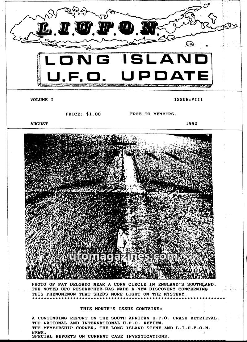 This August 1990 issue of Long Island UFO Update covers a wide range of topics including a continuing report on the South African UFO crash retrieval, a review of national and inte