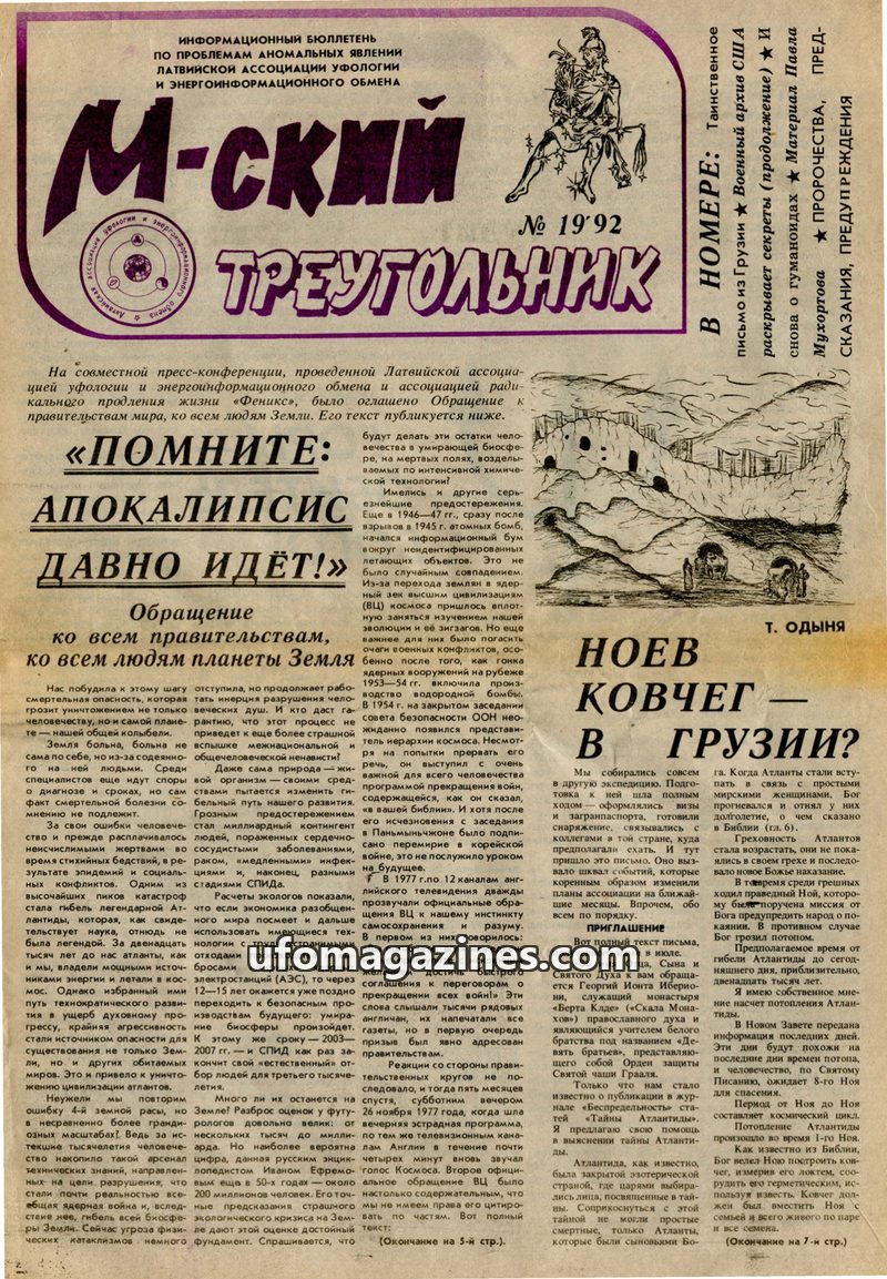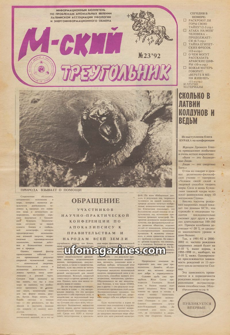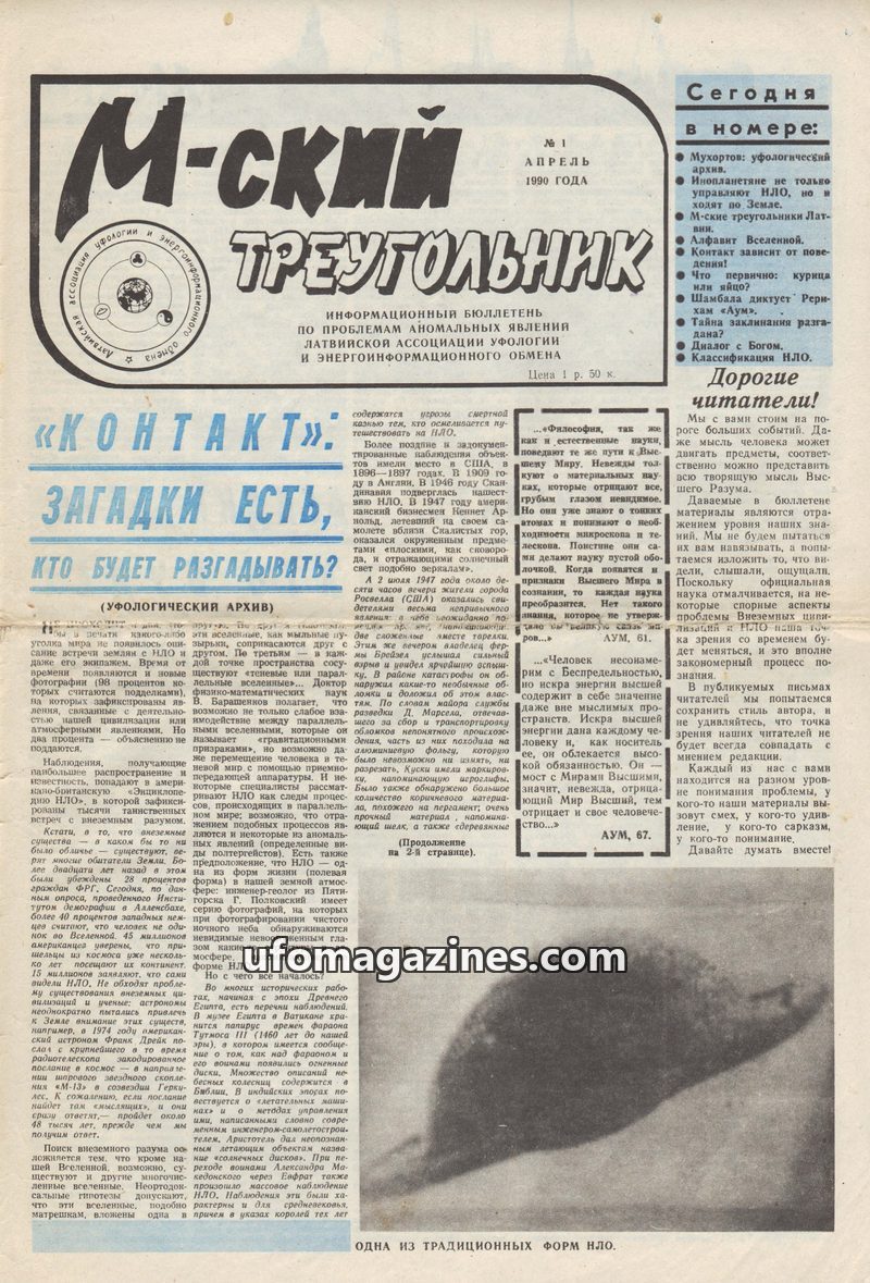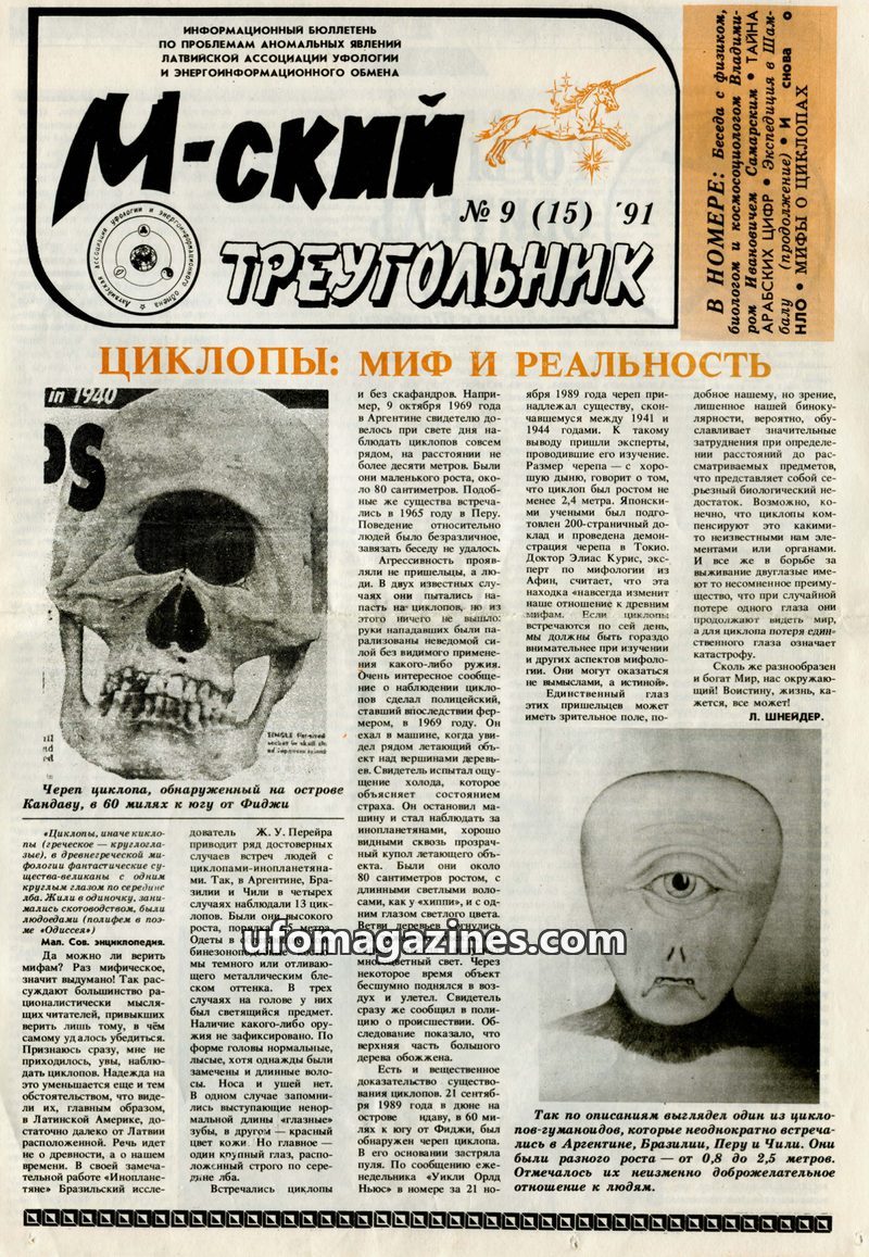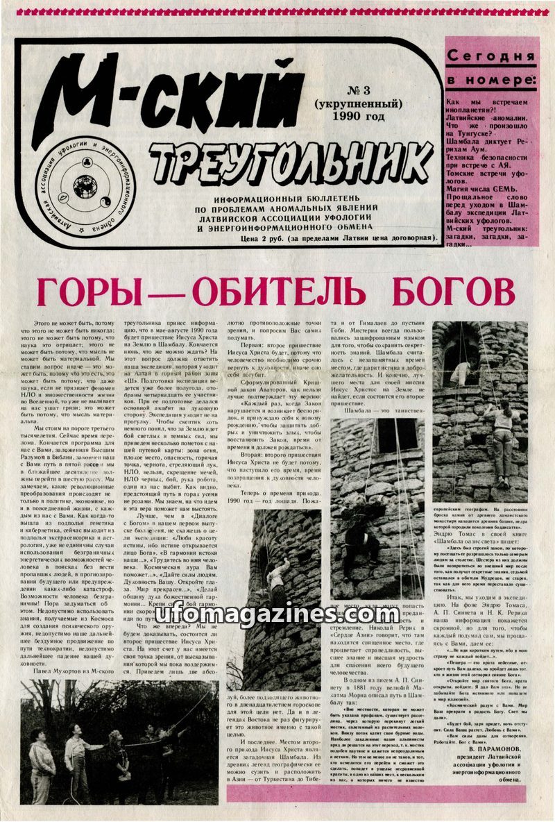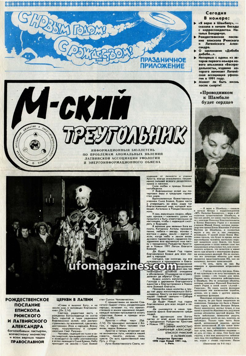 This issue of 'M-ski Treugolnik' delves into anomalous phenomena, featuring an interview with Bishop Alexander of Riga and Latvia, and an article by Inna Shevaleve on ancient civil