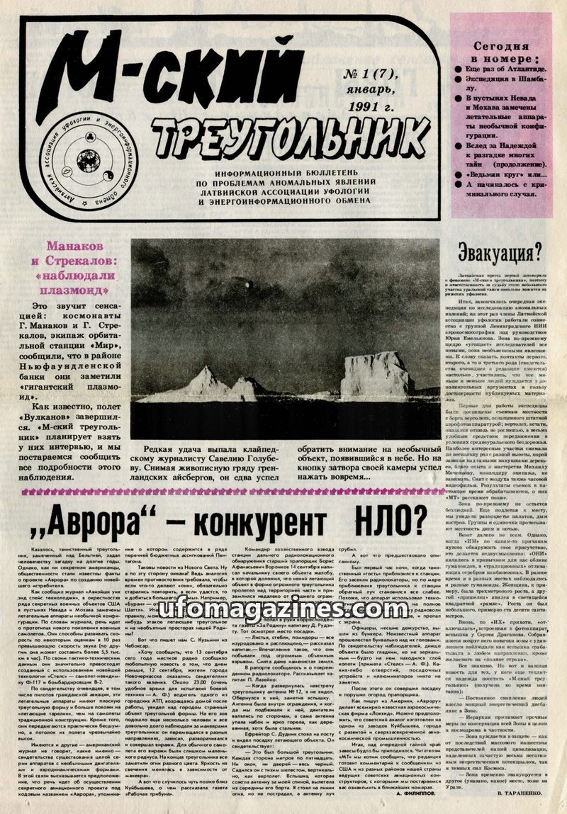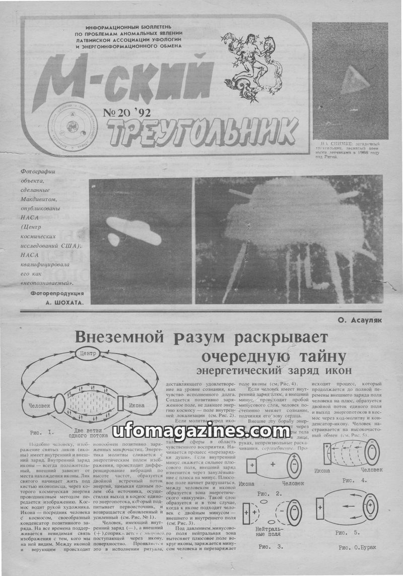 This issue of 'M-sky Treugolnik' delves into various anomalous phenomena, including the sighting of a triangular object by cosmonauts and reports of advanced, triangle-shaped aircr