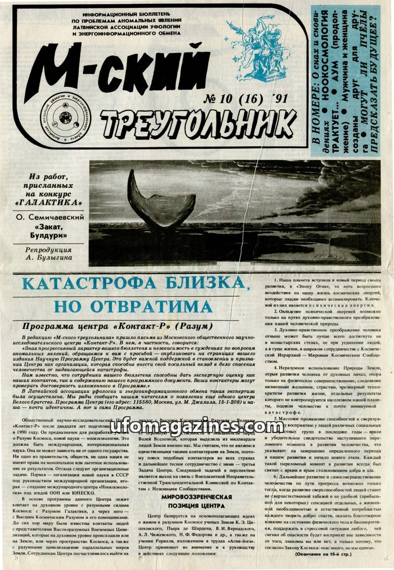 This issue of 'M-ский ТРЕУГОЛЬНИК' features the 'Contact-R' Program from the Moscow Center 'Kontakt-R', which aims to develop a new science called Noocosomology and establish conta