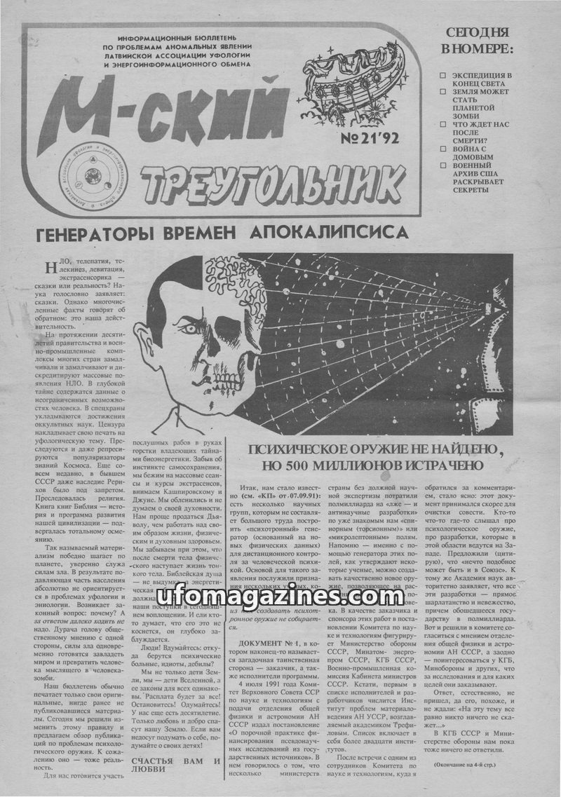 This issue of 'M-ский Треугольник' delves into the controversial topic of psychological weapons, questioning their existence and the vast sums of money allegedly spent on their dev