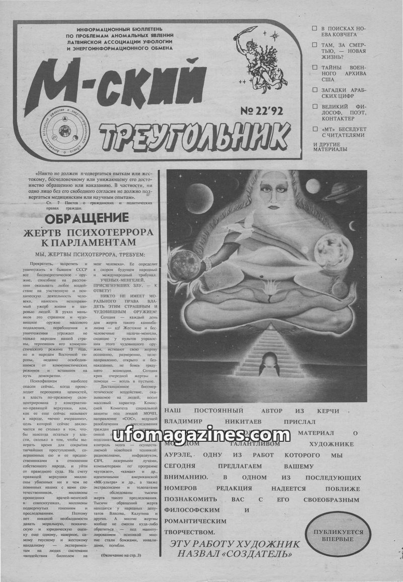 This issue of 'M-SKI TREUGOLNIK' (№22'92) prominently features an appeal from victims of 'psychoterror' to parliaments, demanding an end to bio-energetic weapons and psychotronic t