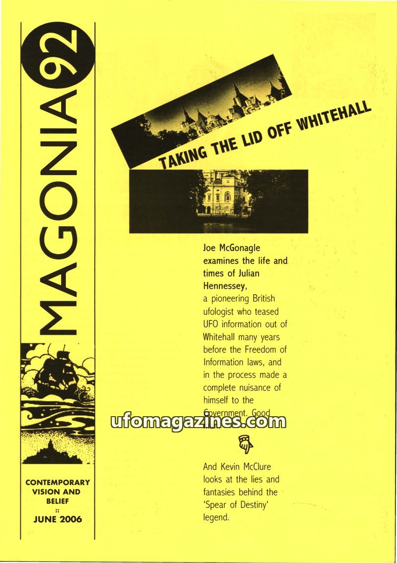 This issue of Magonia details the extensive efforts of Julian Hennessey, a British ufologist, to obtain UFO-related documentation from the Ministry of Defence (MOD) and other gover