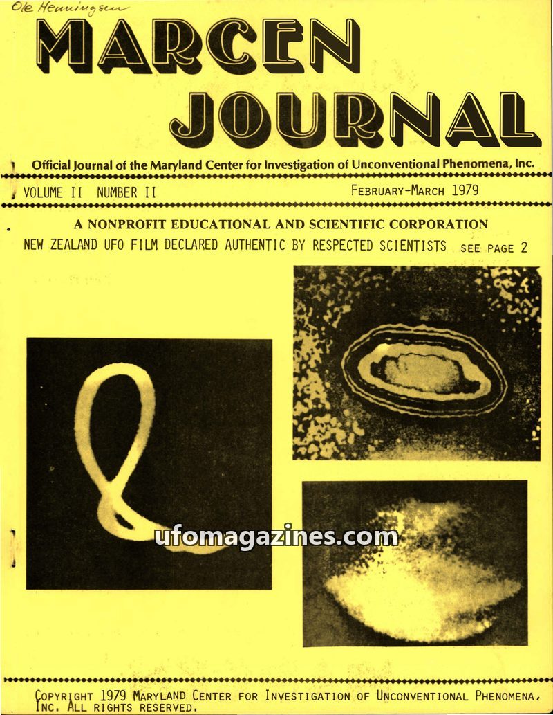 This issue of MARCEN JOURNAL focuses on the New Zealand UFO film, declared authentic by respected scientists, including analysis by Dr. Bruce Maccabee. It details radar-visual sigh