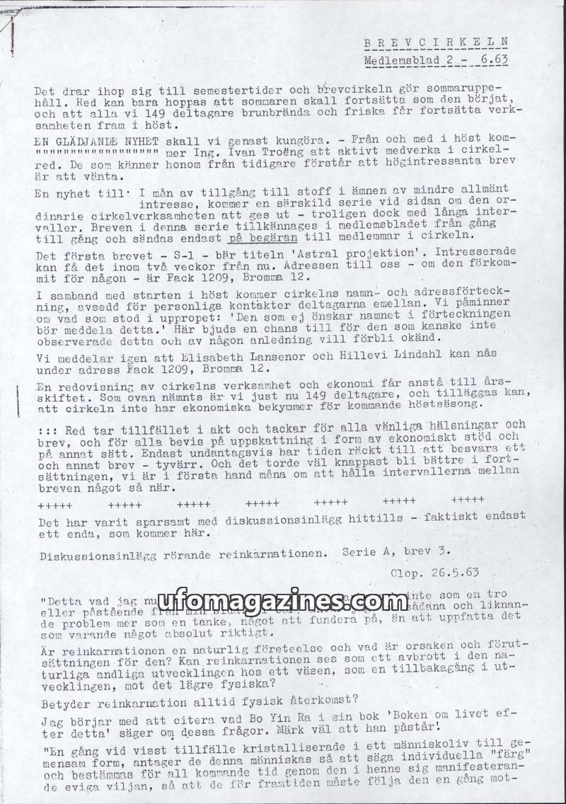 This issue of BREVCIRKELN, a Swedish membership newsletter, announces a break for summer and the upcoming active participation of Ing. Ivan Troëng. It introduces a new series of sp