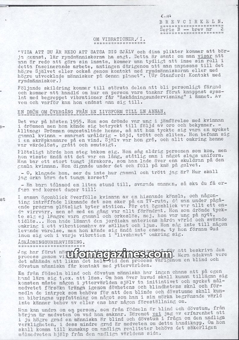 This issue of BREVCIRKELN delves into the concept of 'vibrations' as a means of communication and spiritual experience. It recounts personal experiences of receiving 'vibrational i