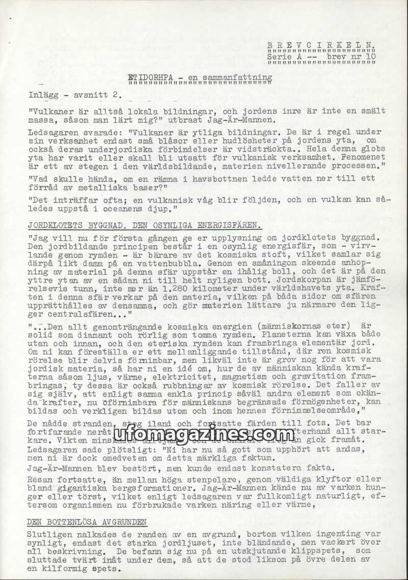 This issue of BREVCIRKELN presents a narrative titled 'Etidorhpa', detailing a journey undertaken by 'Jag-Är-Mannen' into the Earth's interior. The narrative explores concepts of c
