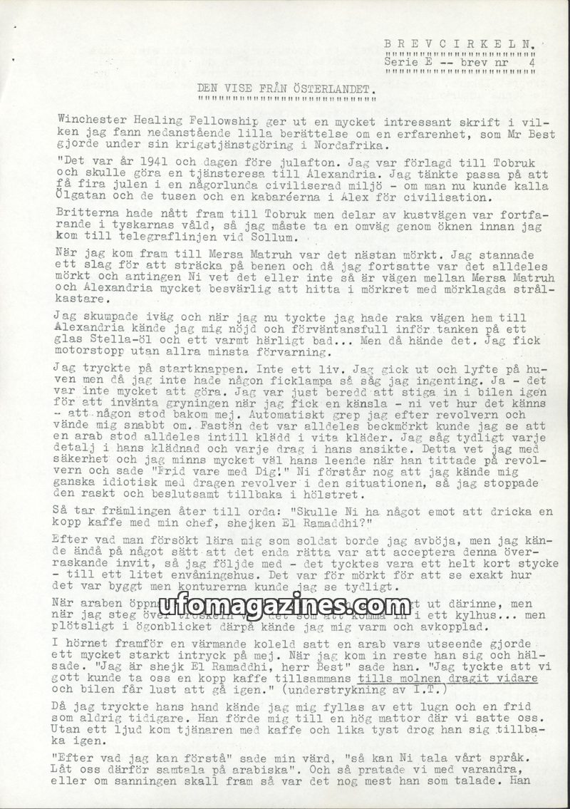 This issue of BREVCIRKELN features an account by Mr. Best of a strange encounter in the North African desert during WWII. His car broke down, and he met Sheikh El Ramaddhi, who off