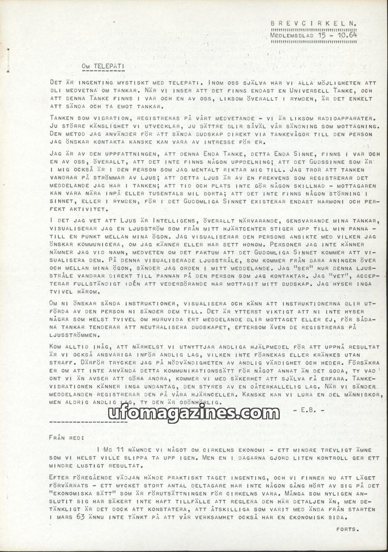 This issue of Brevcirkeln discusses telepathy as a universal phenomenon, likening it to radio waves and emphasizing the importance of mental clarity for transmission and reception.