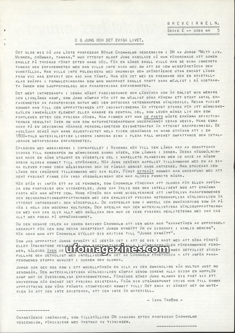 This issue features an analysis of C.G. Jung's autobiography by Professor Börje Cronholm, focusing on Jung's lifelong effort to reconcile parapsychological experiences with orthodo