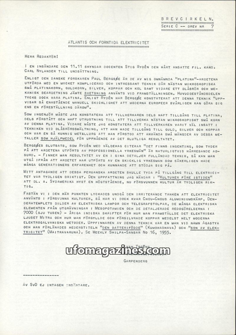 This issue discusses the concept of ancient electricity and advanced metallurgy, particularly in relation to Atlantis and pre-Columbian cultures. It examines findings such as plati