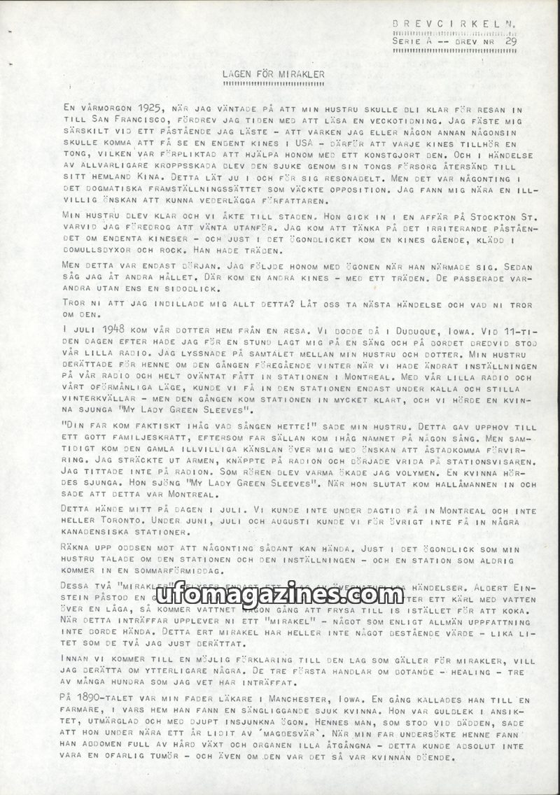 This issue of Brevcirkeln explores the concept of 'miracles' through personal anecdotes and metaphysical explanations. The author recounts several instances of seemingly miraculous