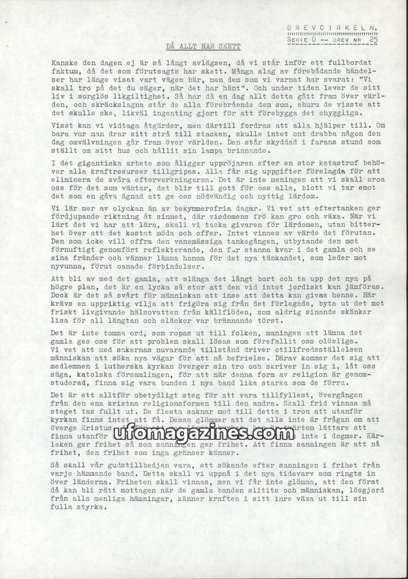 This issue of Brevcirkeln, titled "When All Has Happened," discusses the idea of a coming event or transformation that humanity has been warned about but largely ignored. It emphas