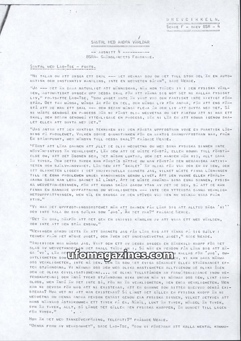 This issue features a dialogue between Meade and Lao-Tse discussing the human tendency to build 'shells' or 'scales' for protection in the physical world. Lao-Tse explains that tru
