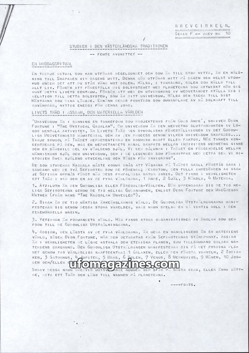 This issue of Brevcirkeln's 'Studies in the Western Tradition' (Brev 10, Serie F) details a midday ritual involving a greeting to the sun and an expanded consciousness of the solar