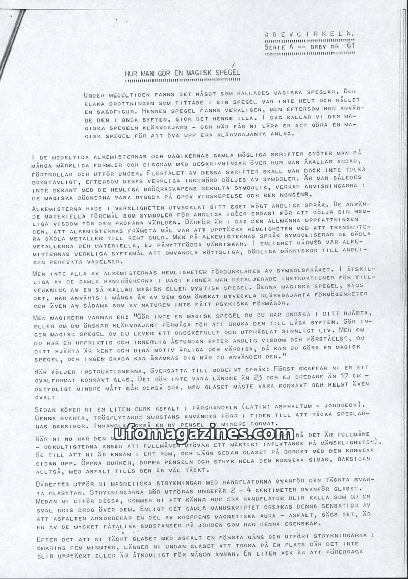 This issue details the historical concept of magic mirrors, often associated with clairvoyance and alchemical practices. It provides step-by-step instructions for creating such a m