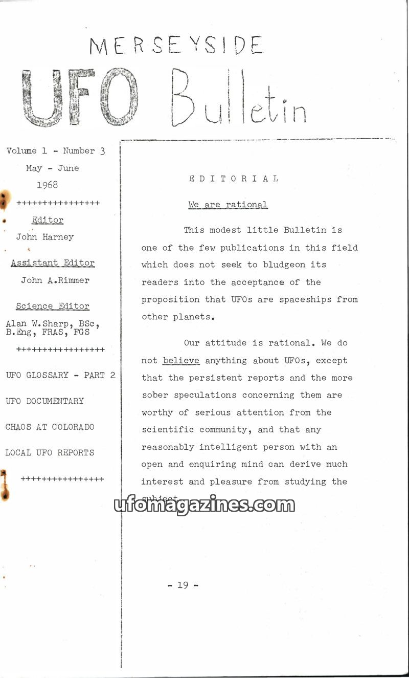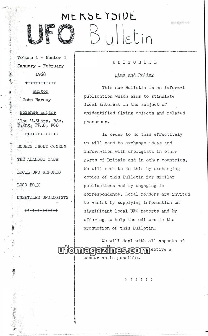 Merseyside UFO Bulletin - Vol 1 No 1 - 1968