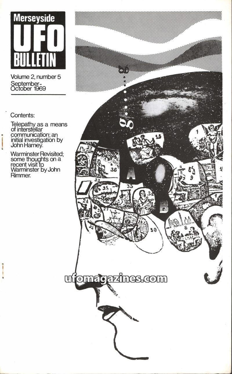 This issue of Merseyside UFO Bulletin delves into the potential of telepathy for extraterrestrial communication, with an initial investigation by John Harney. It also features John