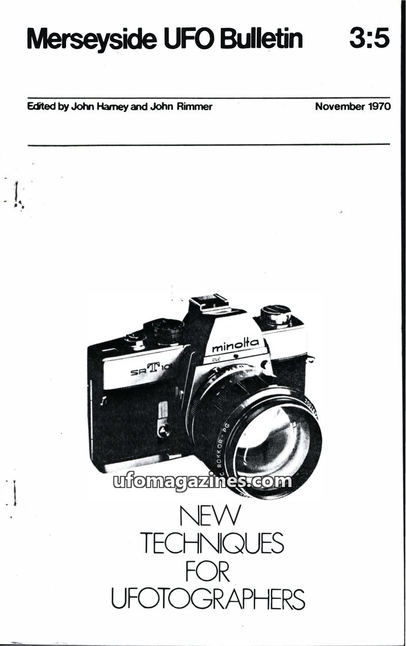 This issue of the Merseyside UFO Bulletin from November 1970 focuses on 'New Techniques for Ufographers', offering practical advice on astro-photography for UFO sightings. It also