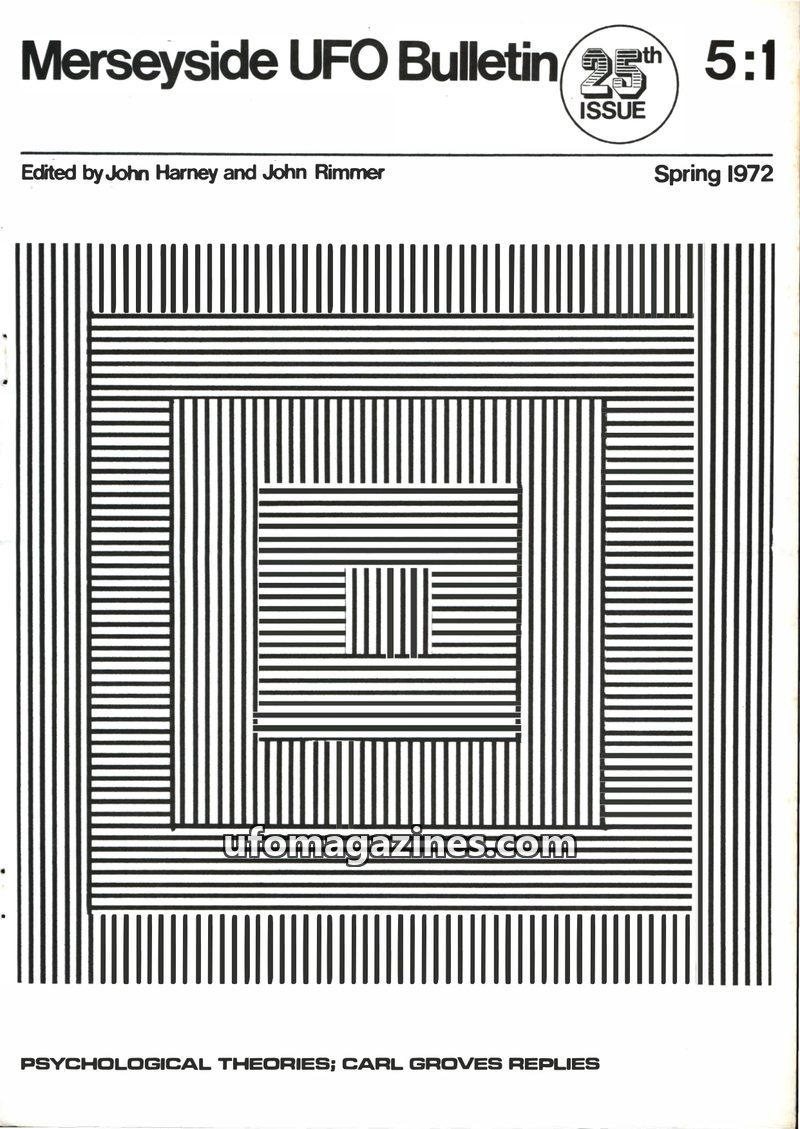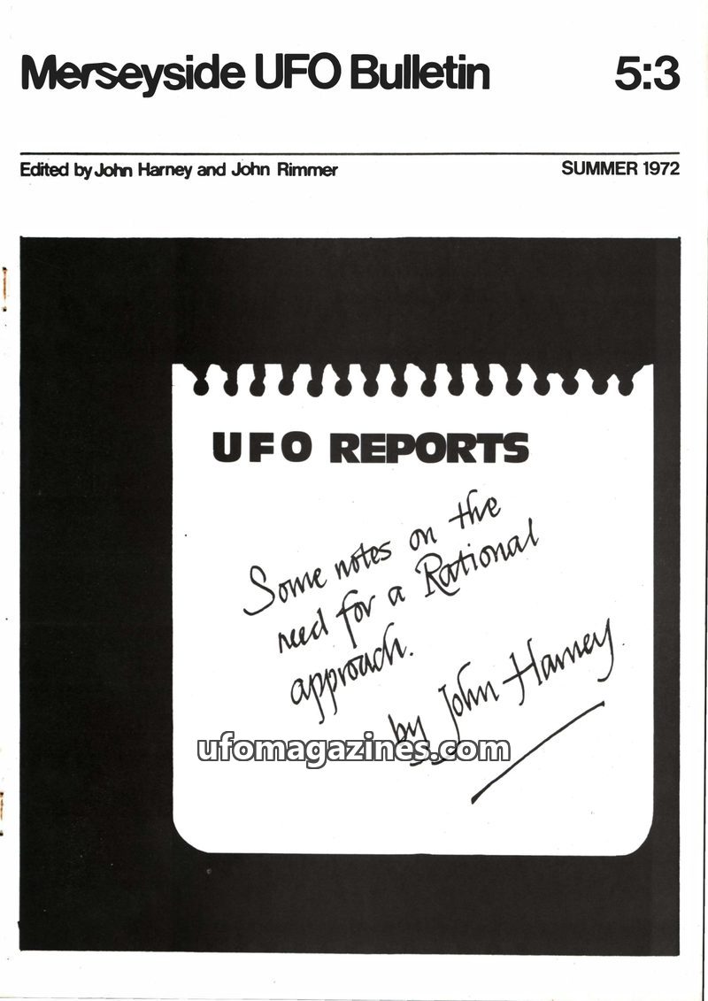 This issue of the Merseyside UFO Bulletin, dated Summer 1972, focuses on the interpretation of UFO reports. It argues for a rational approach, distinguishing between genuine physic