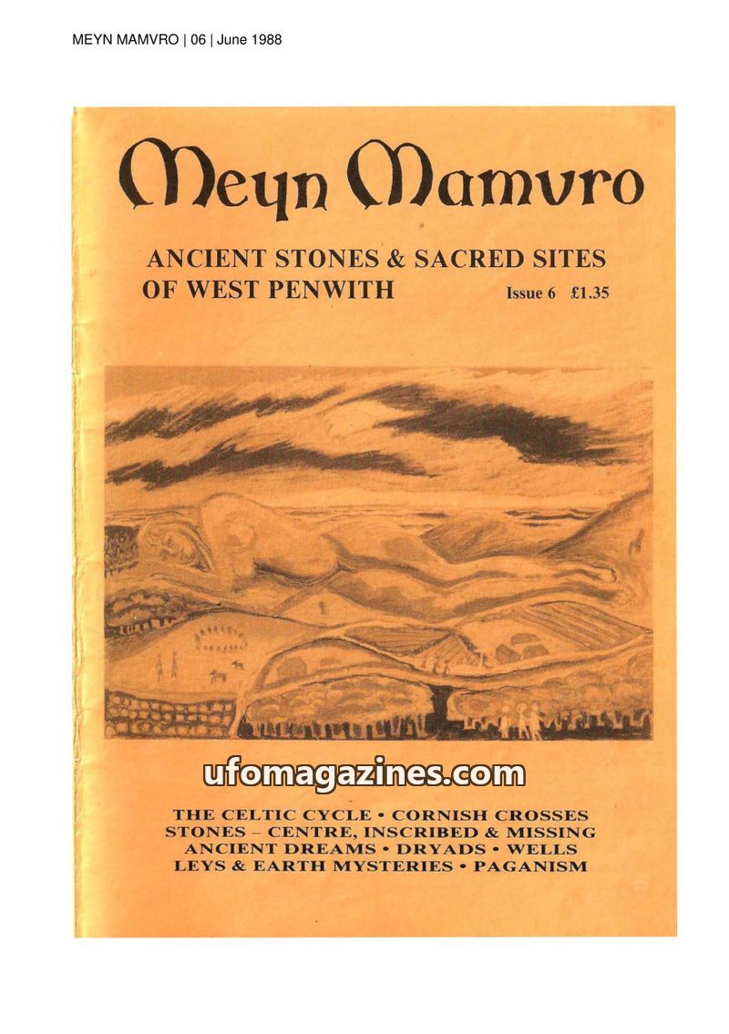 This issue of Meyn Mamvro focuses on ancient sites and earth mysteries in Cornwall. It covers the ongoing concerns about the preservation of the Boscawen-un stone circle, the histo