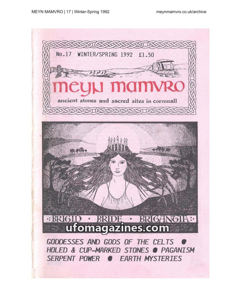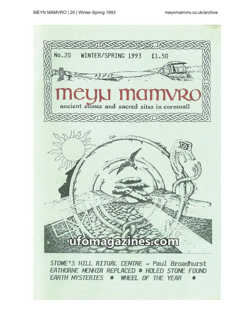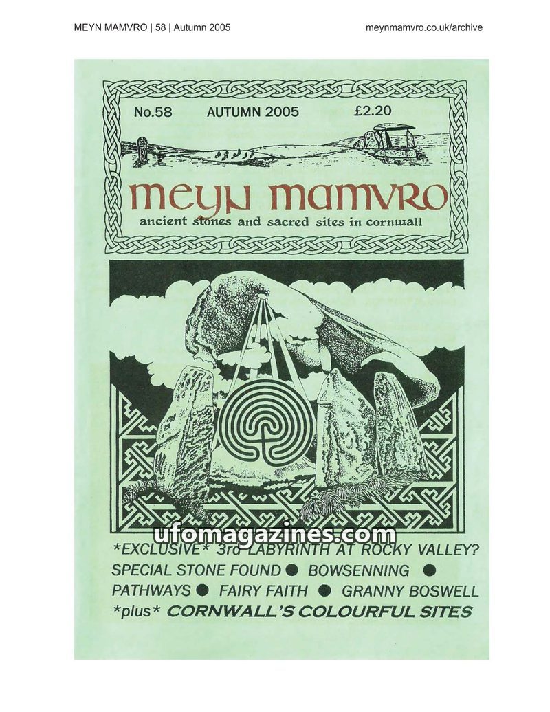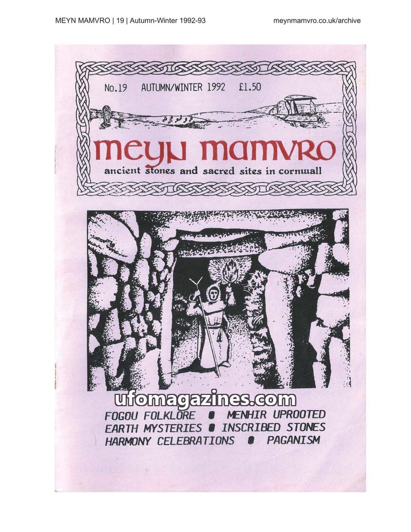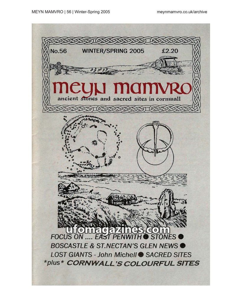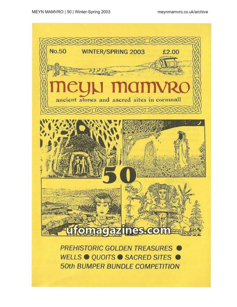 This issue of Meyn Mamvro, number 50, published Winter-Spring 2003, celebrates ancient stones and sacred sites in Cornwall. It features articles on the Cornish Earth Mysteries Grou