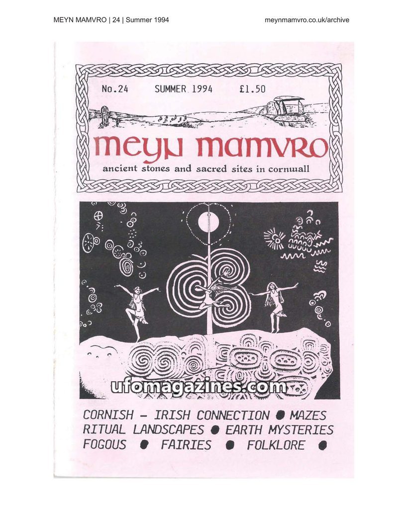 This issue of Meyn Mamvro (Summer 1994, No. 24) focuses on the ancient connection between Cornwall and Ireland, exploring ritual landscapes, megalithic sites, and shared folklore.